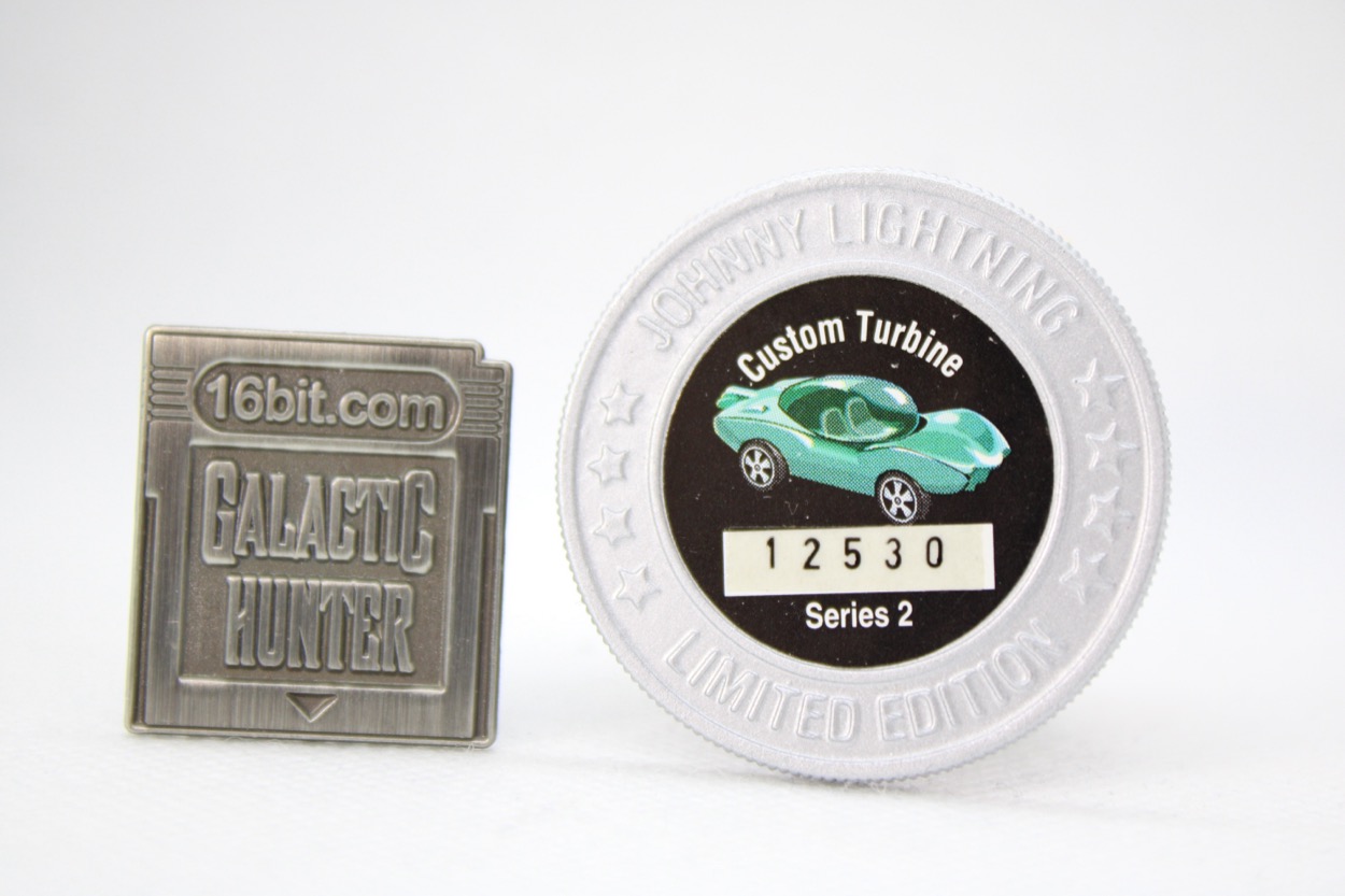 You get a plastic coin with a sticker on it, and that's pretty much it. This is a deluxe product that is arguably better than the deluxe car toys of today, in that it's kind of weird, decidedly retro, and has a nice heft to it. Given that it's basically worthless, you should see if you can find one. It's not amazing - the paint job isn't as fancy or detailed as a lot of modern toys - but gosh darn it it's imaginative. I want more things like this.