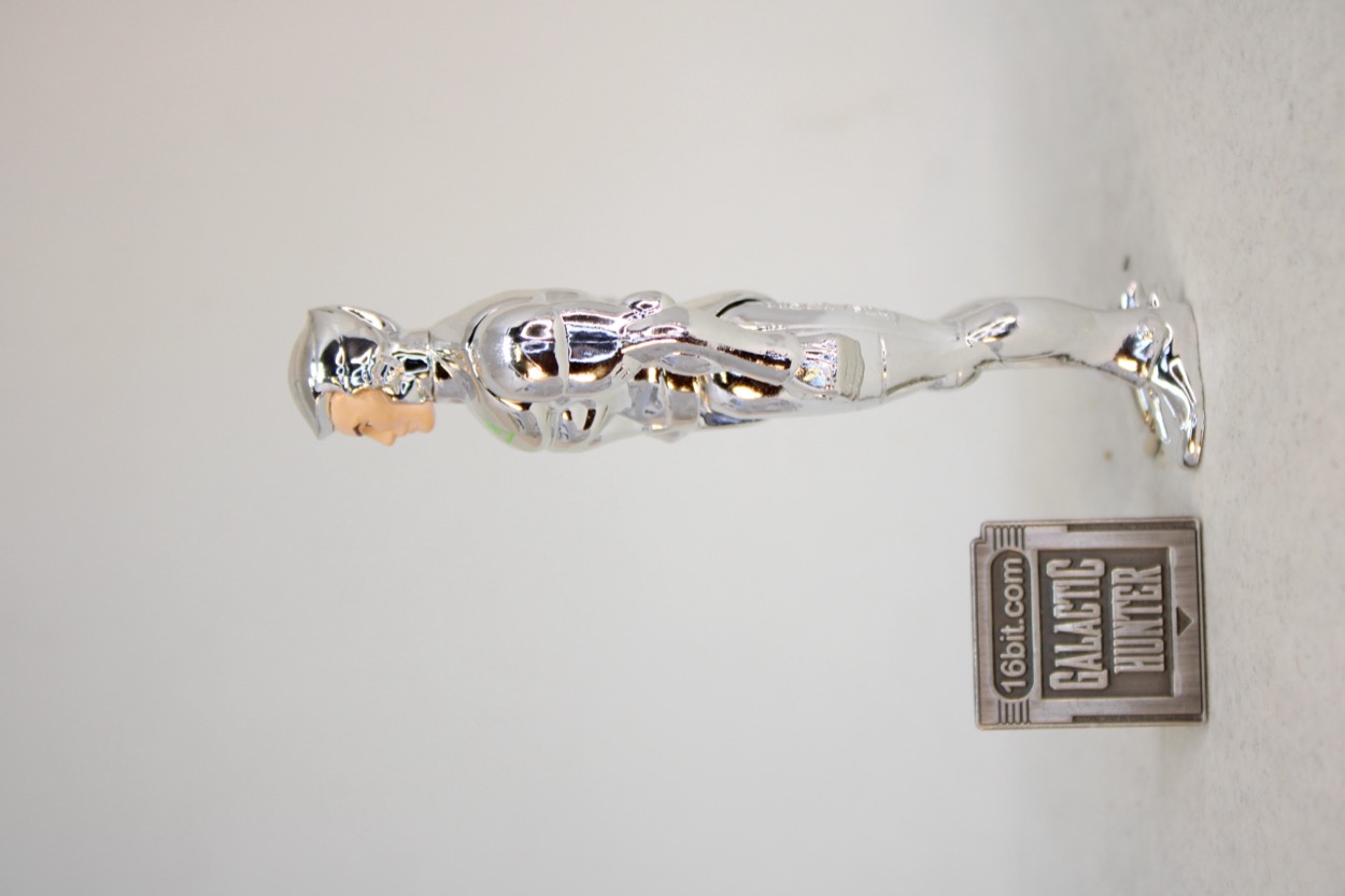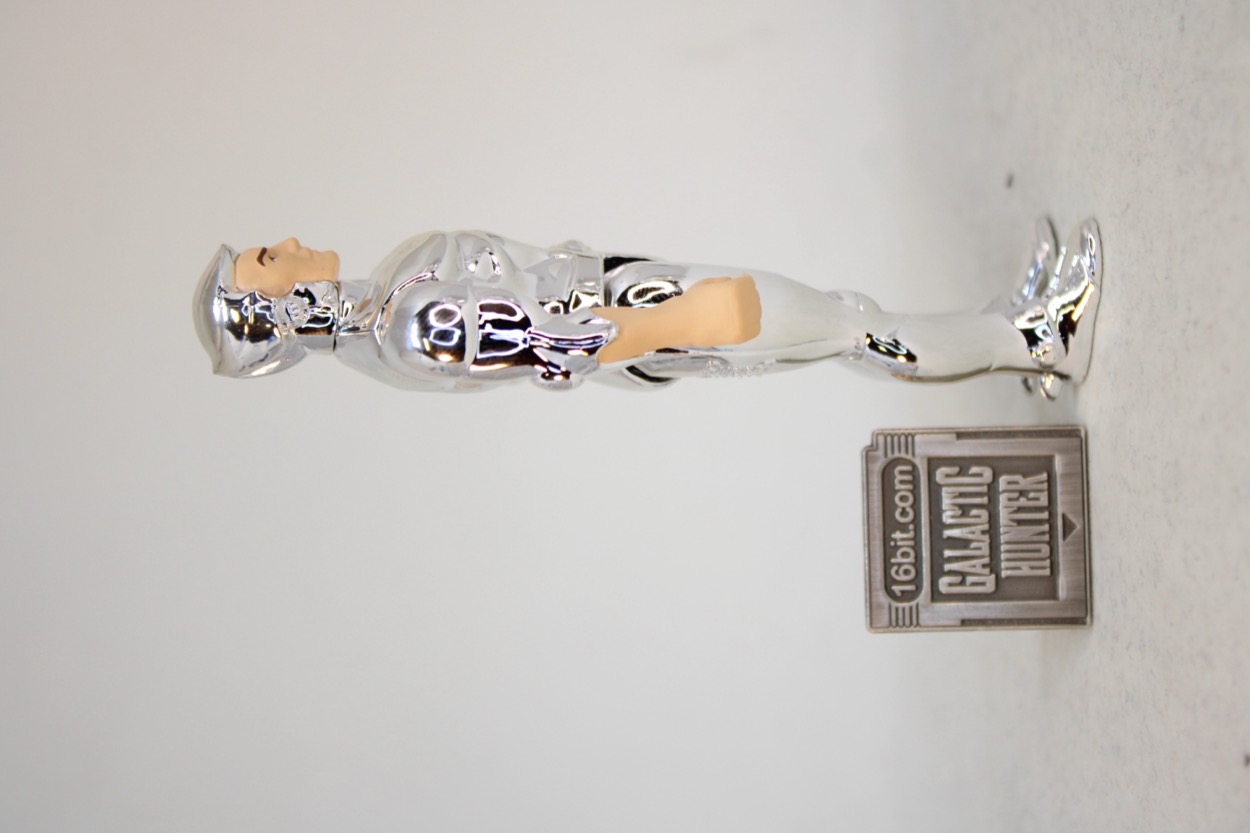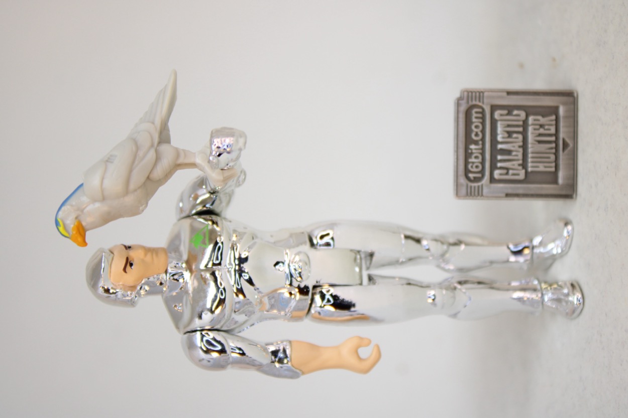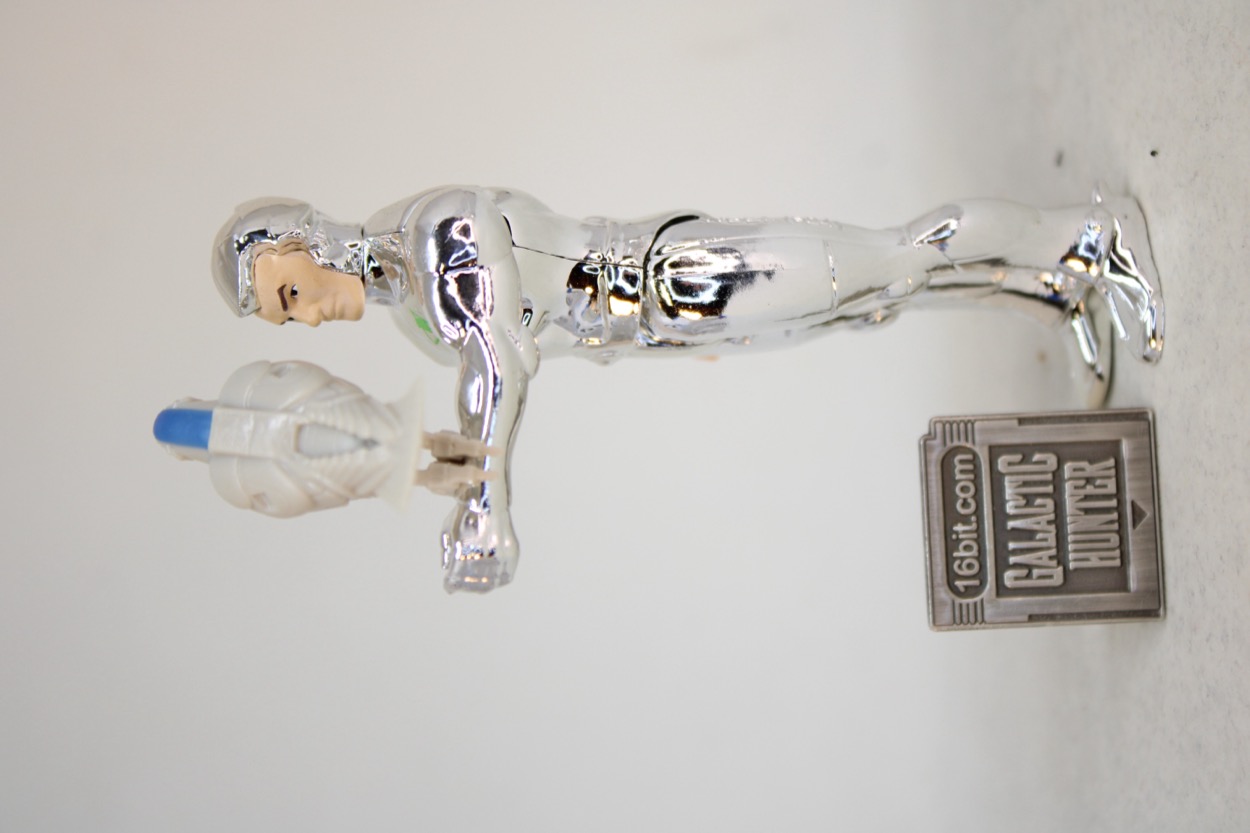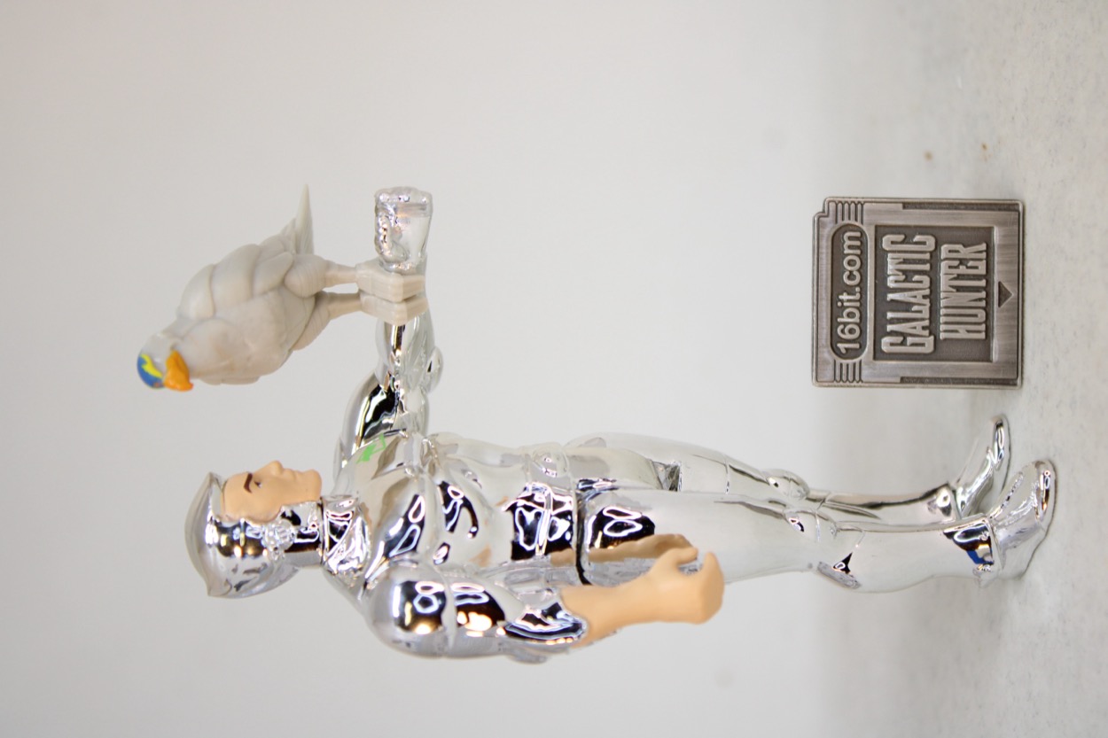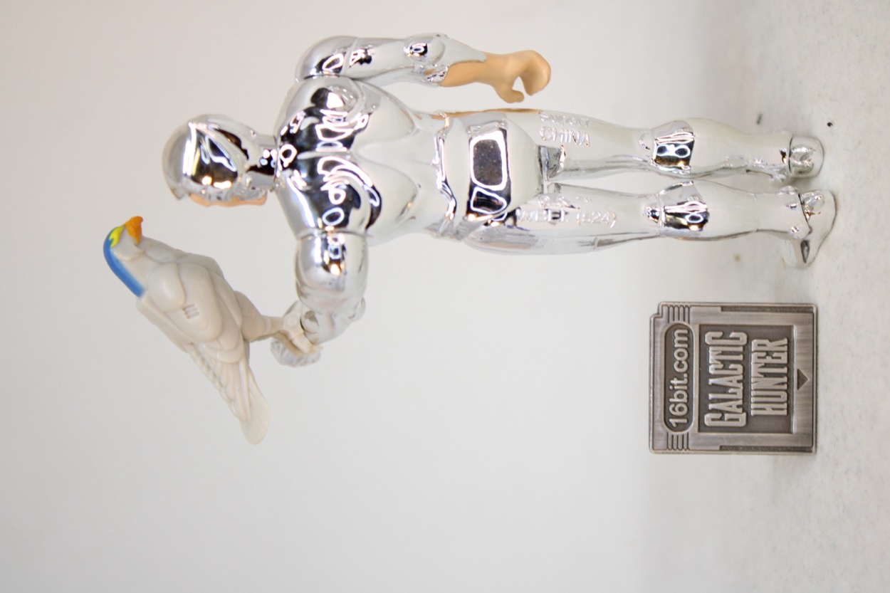 ...but you know how these things go, those masks were super-cool and look a lot like Samus Aran or Boba Fett. They go great with the distinctive soft-serve swirl chrome hair. I might not be able to say no. Super7 included one accessory, and it was the right choice - Tally-Hawk! If memory serves he was featured regularly on the cartoon. I got a pencil topper of him from Burger King, he came with Quicksilver figures, and Kenner even made a giant toy of him. He's the mascot of the show, so it's good to have him here. He has soft plastic talons which clip on his partner's arm, and it looks great. I was worried the claws might not be flexible enough or that the chrome would make me nervous, but so far so good. Having said that, I would also recommend considering not storing your bird friends on the figures for long-term displays because you never know how plastic may discolor or corrupt the chrome over time. I will probably 3D print him a little perch if I can find a good one, or make one.