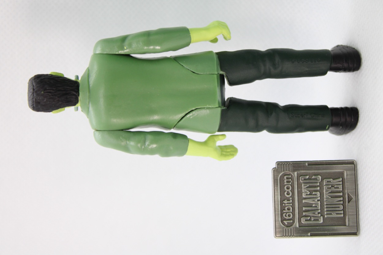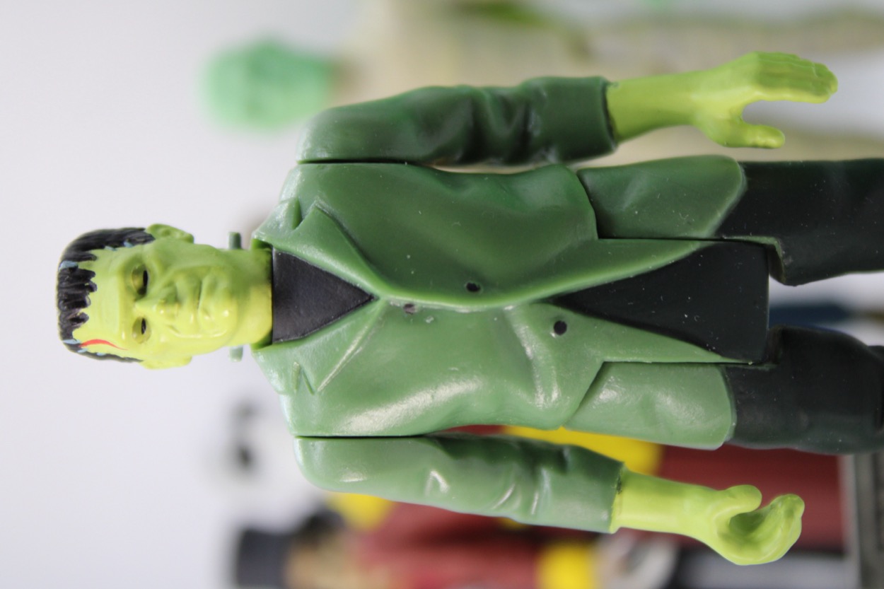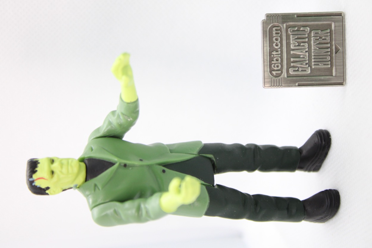 The costumes of this and other classic horror monsters seem to get reinterpreted by new style guides and products every few years, and aging fabric makes it hard to know for sure if they got it right or not. I'm looking at a photo of the alleged real costume right now, and it looks like a black jacket. Stills from the movie also look black. Remco's figure looked like a black coat, but Burger King's 1997 figure looks a lot like this one. When Funko made a Frank, he had a gray coat. Which is right? No doubt film historians will continue to debate this, as the intent of a black-and-white movie can be hard to guess as the idea was to have a ghostly white monster, which was done with green make-up. So is he green? Pale? What was the hope of the director? I don't know. But it's a neat figure that looks like other color representations of the character in recent years.