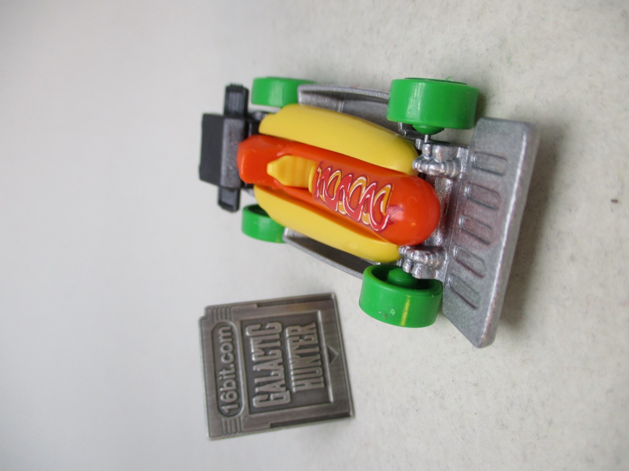 A number of other varieties exist, with different colors of wheels, alternate condiments, and unique "tray" decoration. They're all good for different reasons, and I don't know that one is any better than the next unless you prefer a certain kind of wheel or sausage. The important thing is this car is pretty new, fairly cheap, and probably in a big blue bin in a Walmart or grocery store within driving distance of your home or office. I can't make your day better, I can't make your kids call, and I can't change the speed of the rotation of the Earth... but I can say your day will be statistically hundreds of thousands of times better if you buy this goofy toy car instead of a lottery ticket. It's probably never going to be worth anything, I doubt anyone is going to clamor for it down the road, but there are taco cars, there's a Big Banana Car [FOTD #2,838], there are food trucks. It serves the purpose of a toy - you will be amused briefly, and hopefully, you will enjoy it for years (or hours) to come.
