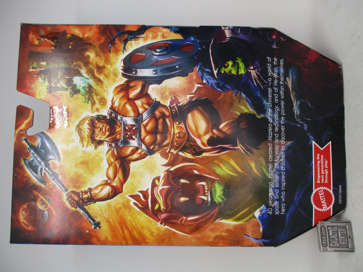 Item No.: Asst. ??? No. HJH58 Manufacturer:Mattel Includes:Power sword, Axe, Shield, Fist, Open Hand Action Feature:n/a Retail:$19.99 Availability:August 2022 Other: I got it for $5.00 at Five Below in 2024