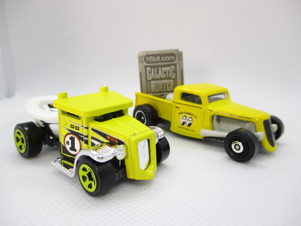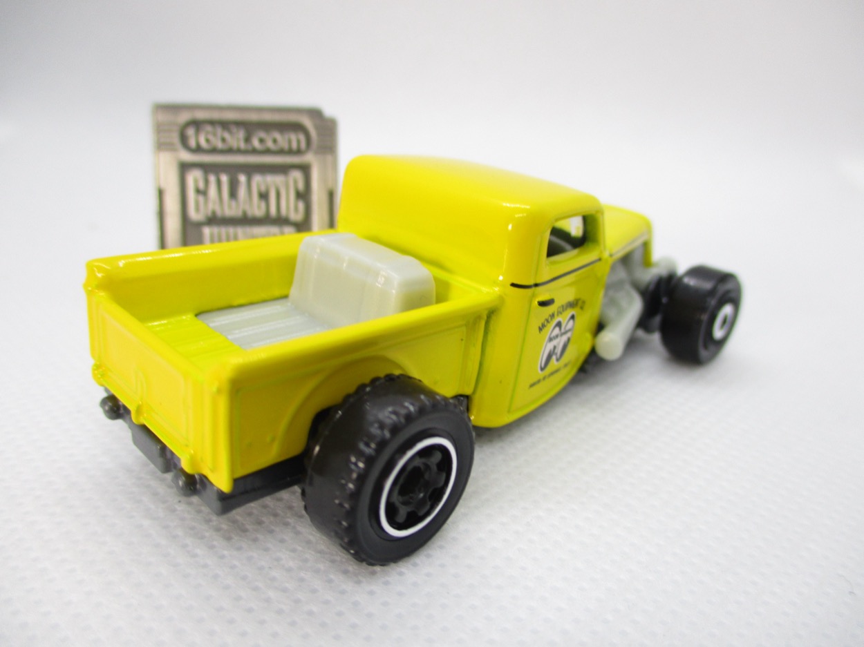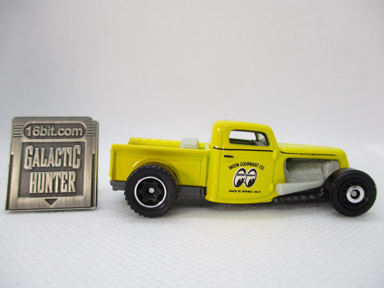 A lot of my car toy purchases boil down to "hey, that's neat." The '35 Ford Pickup reminded me a lot of my yellow Gotta Go [FOTD #2,847] and at a dollar, that was reason enough for me to bring it home and compare the two. They're pretty similar! But not identical. There are no toilet elements in Matchbox, it would seem.