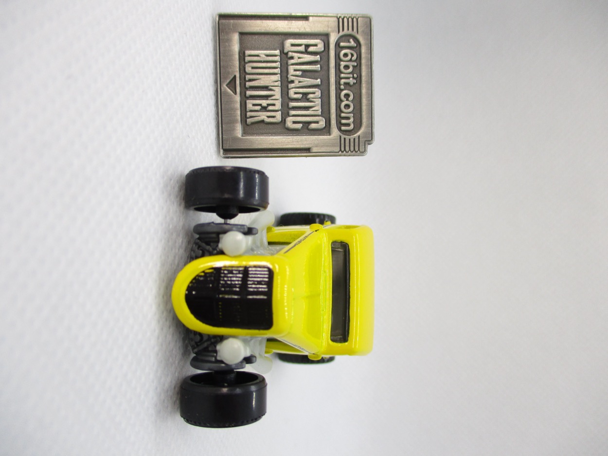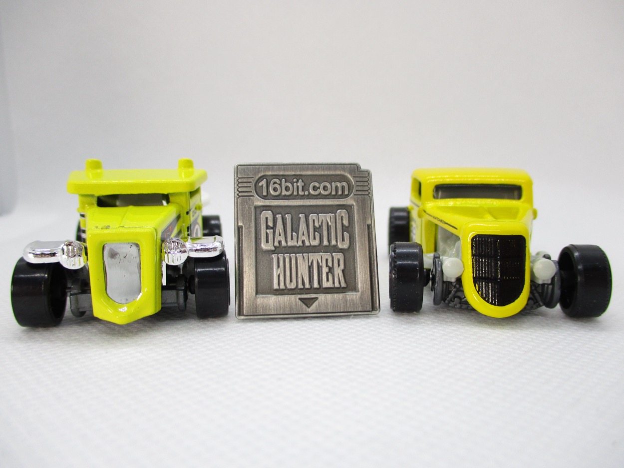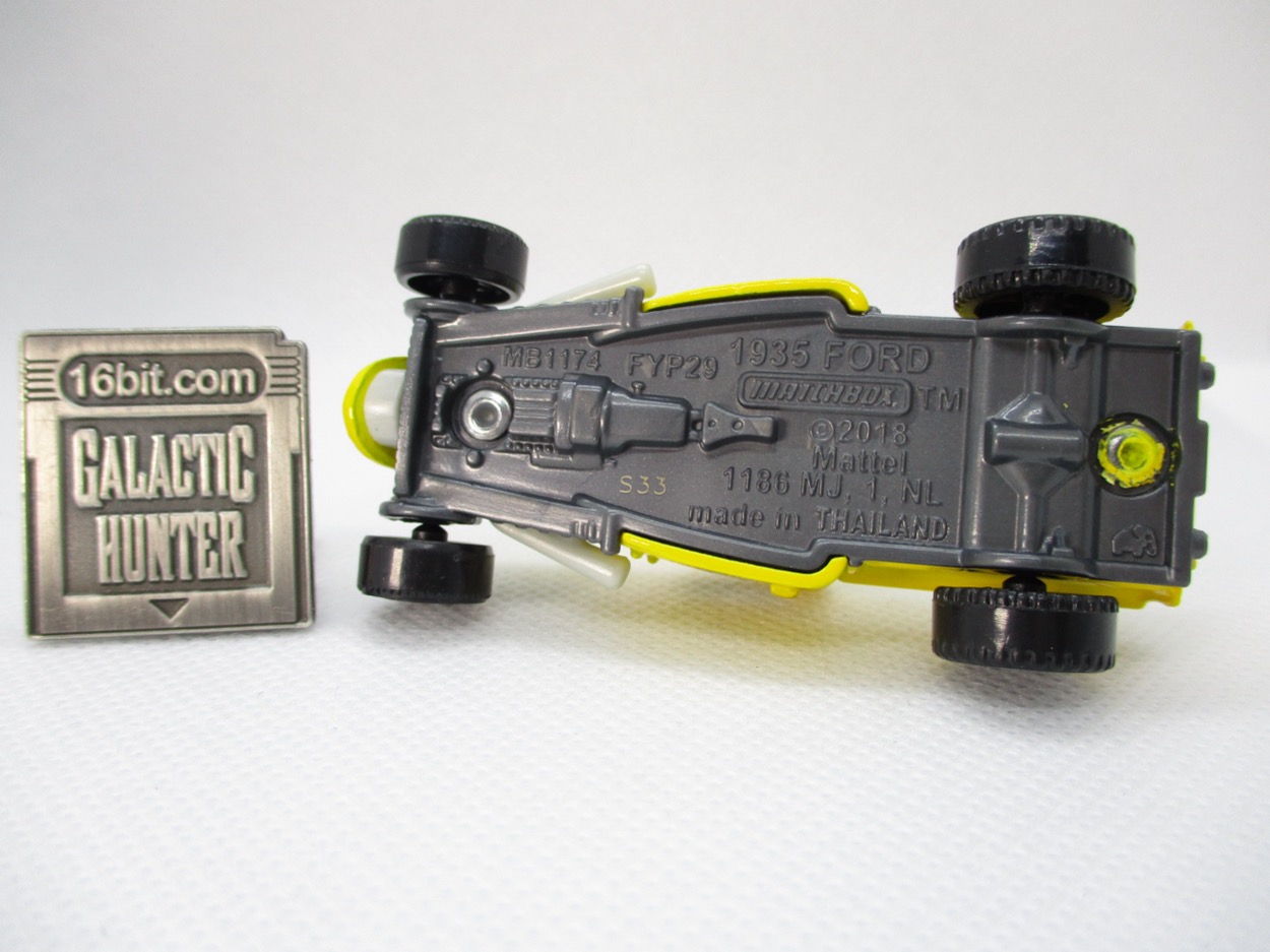 A lot of my car toy purchases boil down to "hey, that's neat." The '35 Ford Pickup reminded me a lot of my yellow Gotta Go [FOTD #2,847] and at a dollar, that was reason enough for me to bring it home and compare the two. They're pretty similar! But not identical. There are no toilet elements in Matchbox, it would seem.