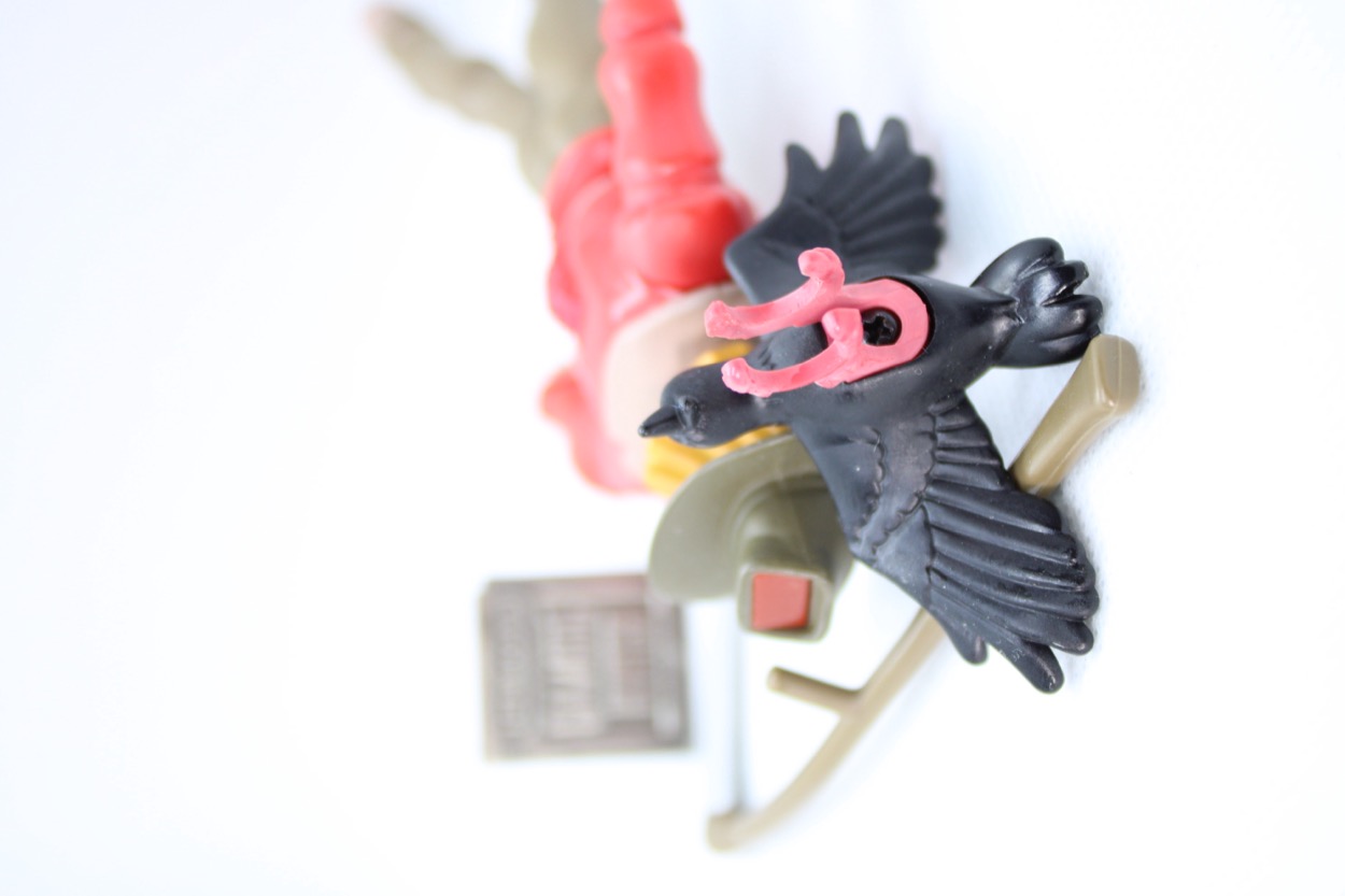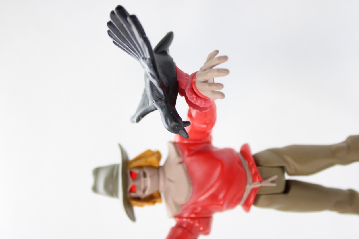 You could place his sickle in his right hand, spin the wheel, and knock over your other figures - which is quite a nice gimmick. If that weren't enough he had a crow buddy with clip-on feet, not unlike what we got in SilverHawks a few years earlier. The bird was unpainted, but you had some silver on the accessory's blade as well as key parts of Jonathan Crane's costume. Mostly, he was molded in color though and looked all the better for it.