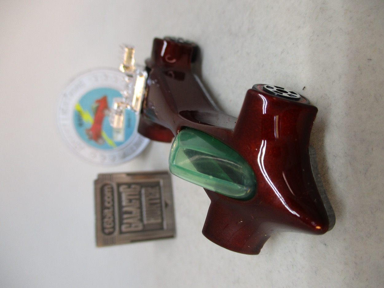 This reissue captures the spirit of the original. The greenish canopy looks a lot like Coke bottle glass, with a silver vac metal plastic engine on the back. The maroon paint is very evenly applied, with a hint of metallic flakes. It's really nice. The wheels have red lines on them, with some silver shining on the rims.