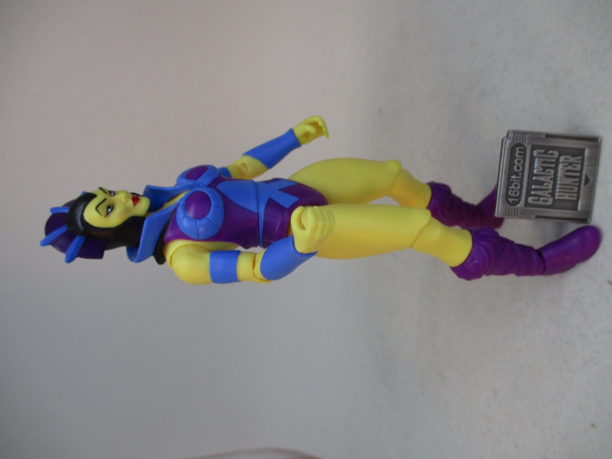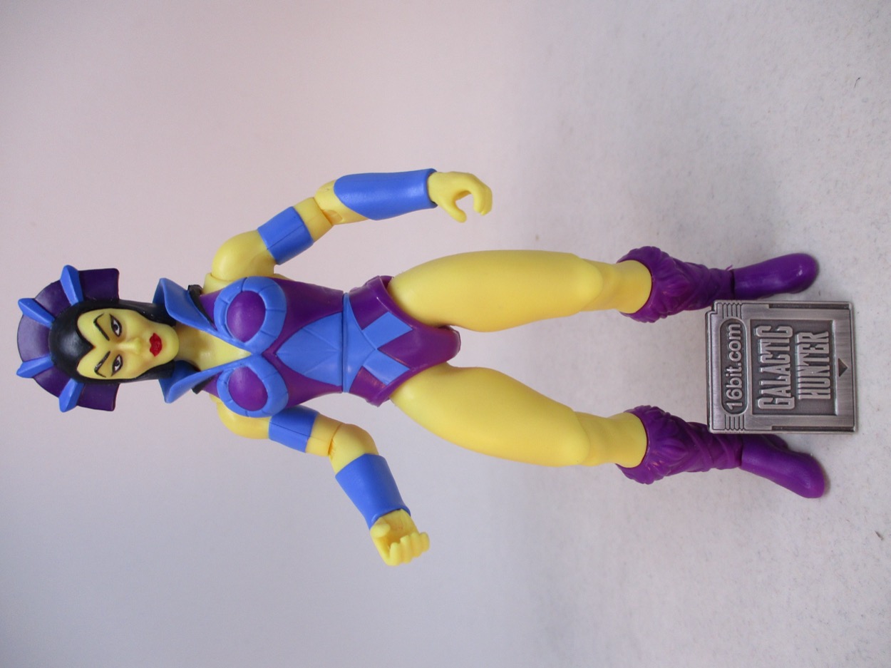 Her hat mimics the cartoon nicely, with a bigger crest than the toy figure design. That's good! The arm braces all look right, and her articulation is typical for the line. This is to say, it's good enough to make you feel you got your $20 worth. Rocking ankles, bend-and-swivel wrists, and a ball-jointed head mean that while it isn't the most articulated figure on the market today, you'll be glad it's also not the most expensive. Twenty bones for a cartoon version of something you may have watched when you were four or five is a pretty good deal, especially since she can sit in appropriate vehicles or creatures from that era too.