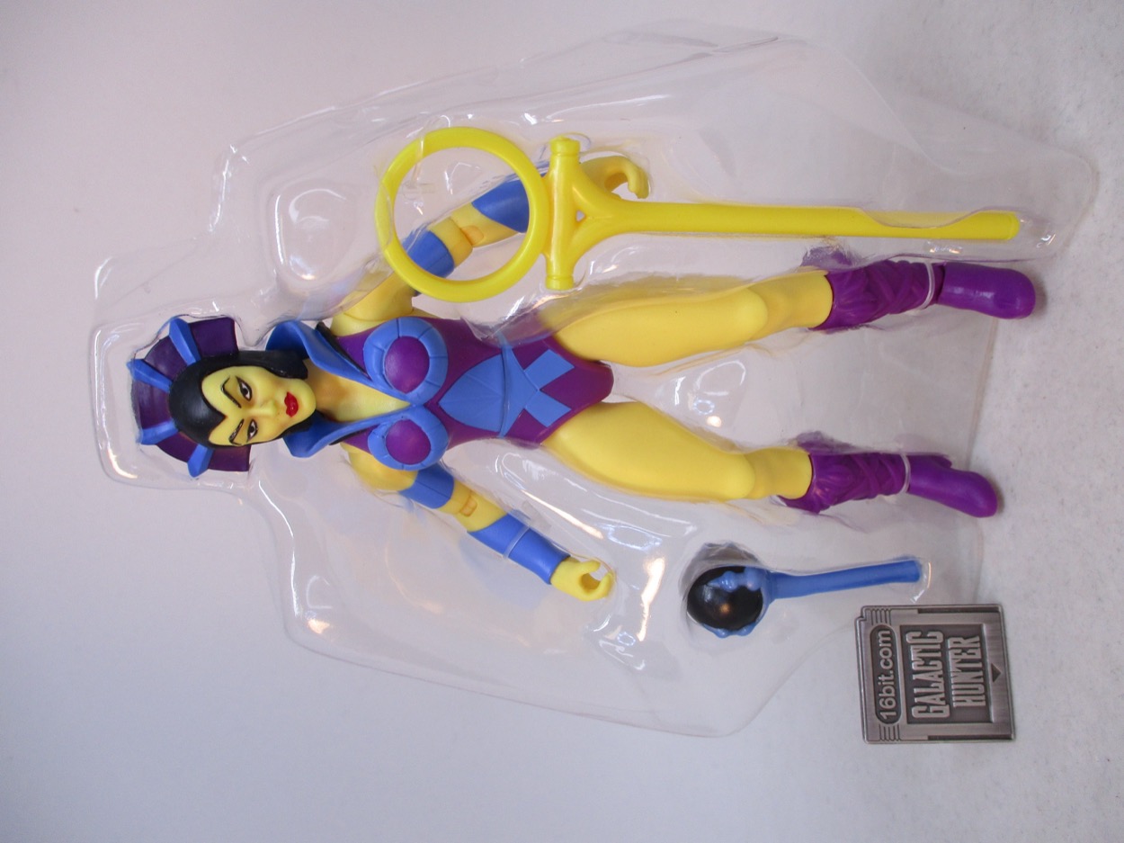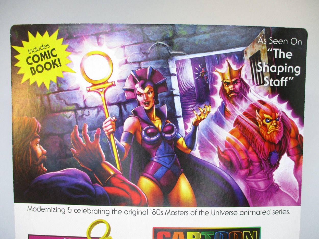 Her bonus accessory is the Shaping Staff, a yellow artifact from an episode of the same name. It looks a lot like the toy, and I appreciate these little details being brought into the world of toys without being part of an accessory pack. Also, it helps her stand apart from the Mattel Filmation Evil-Lyn [FOTD #1,596] which did have a cape, and whose colors do tend to match fans' memories of the show a little more closely. Were this version to come out first, maybe it would have been the colorway fans think of when it comes to the cartoon design.