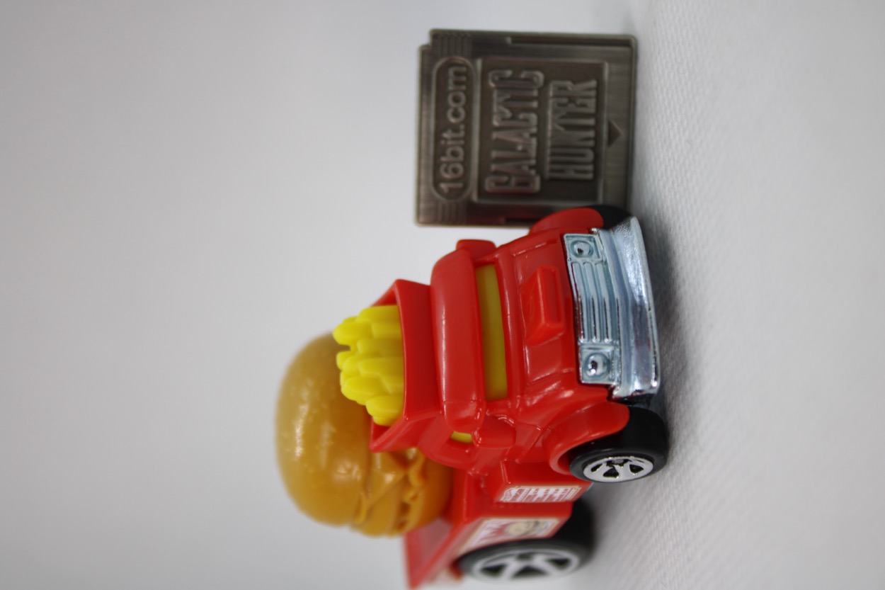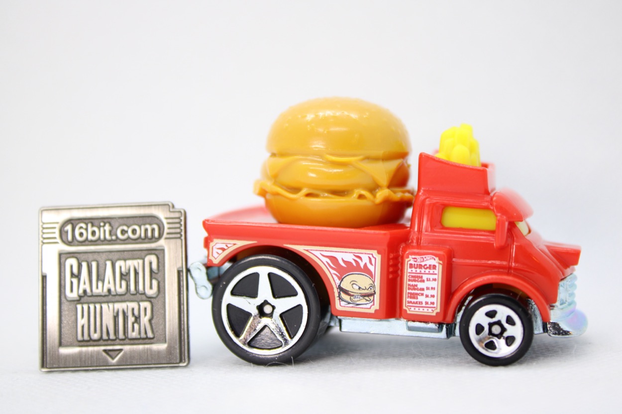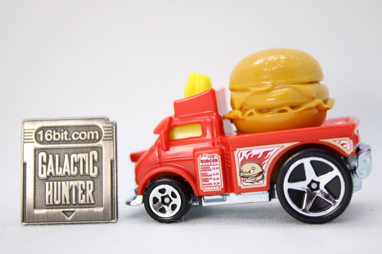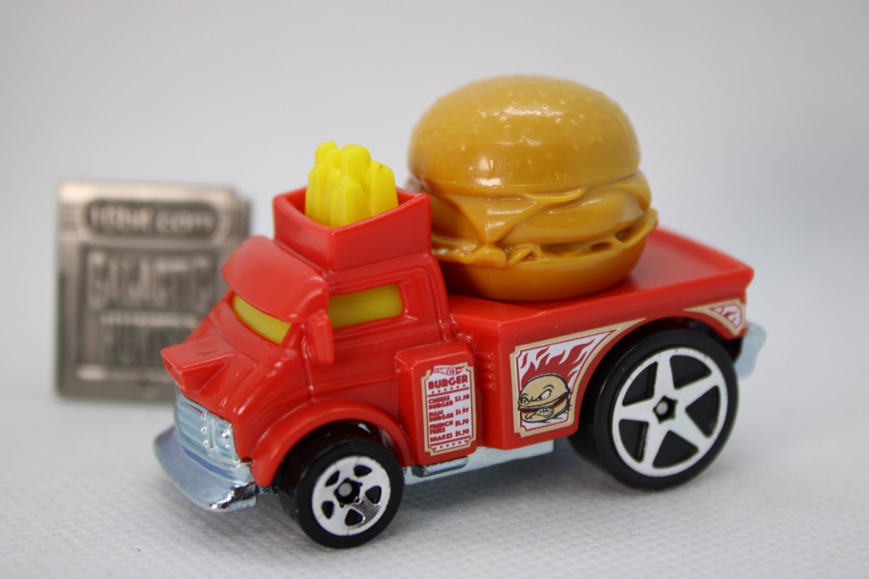 I was out and about getting dinner - not a burger, this time - and saw this on a peg at a store. I like the weird cars, and this one qualifies. A bit plastic burger has no paint, but plenty of sesame seeds and sculpted food elements like cheese, pickles and lettuce. On the bottom. Like some monster. I would love to see a deluxe version of this burger with more paint - it's a little plain, while the rest of the car is pretty much perfect.