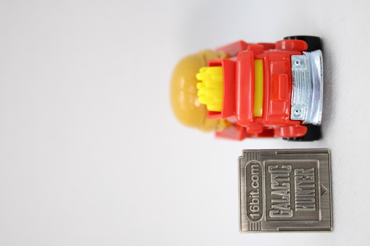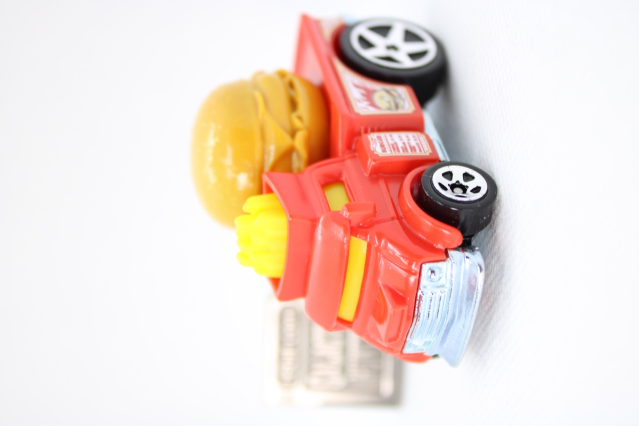 The packaging boasts "wings and winglets [that] generate a superior downforce while accelerating through loops and banked curves." I On the roof of the truck, there's a little red cardboard fry cup thing. I don't see as many of these at my burger joints of choice anymore, it reminds me a lot of what I saw as a kid (especially in commercials.) The motif continues with the doors, resembling ketchup squeeze bottles.