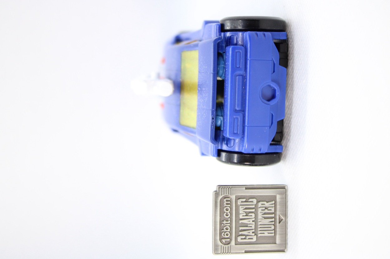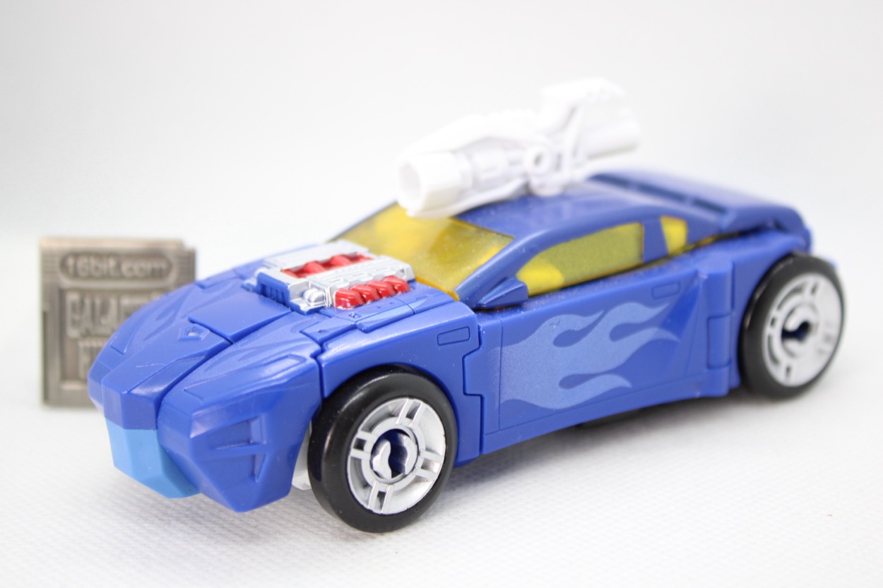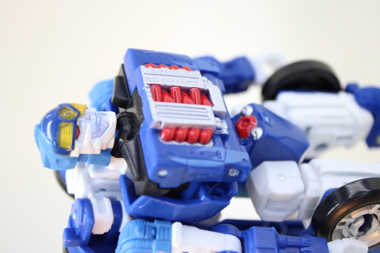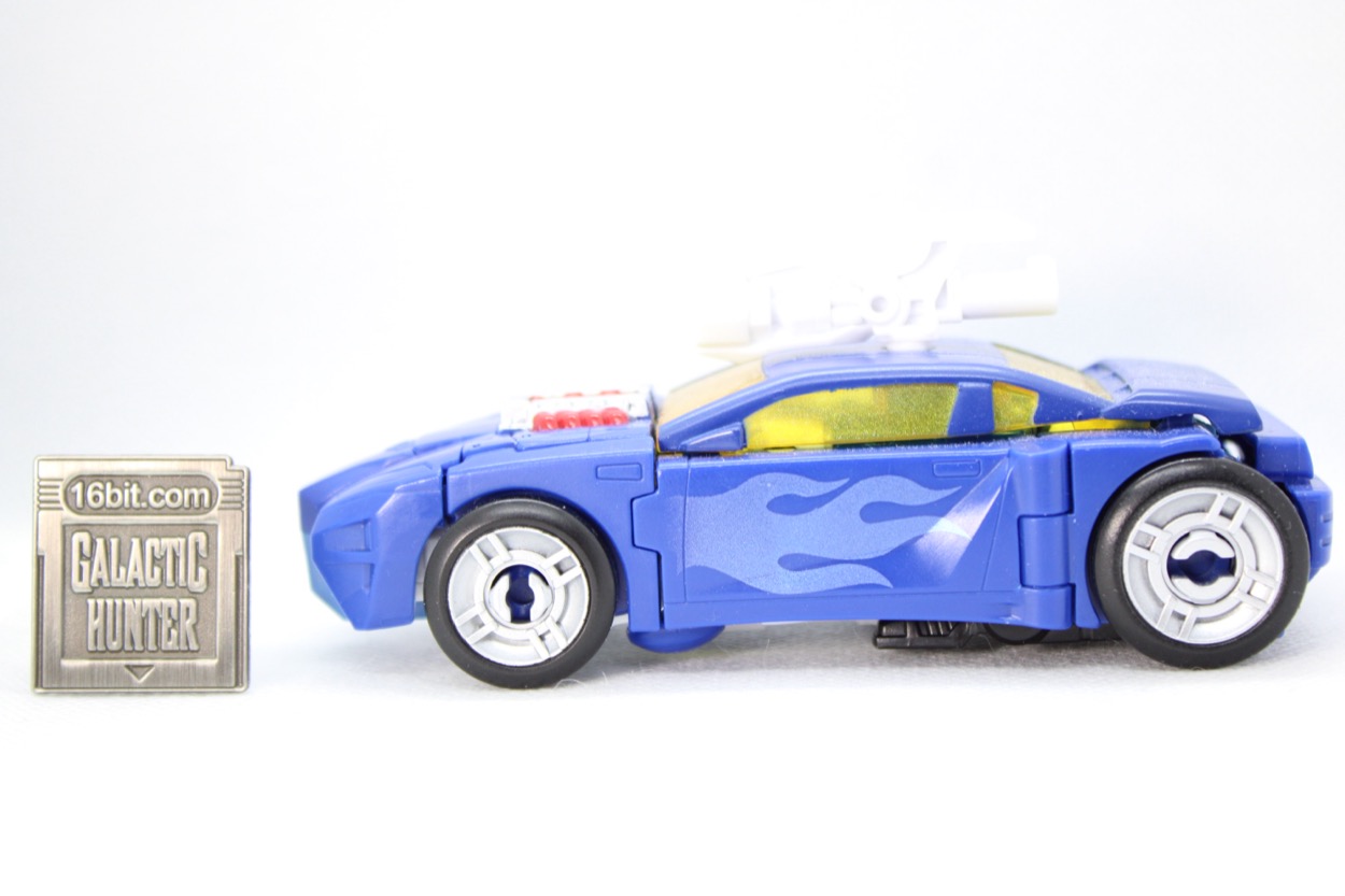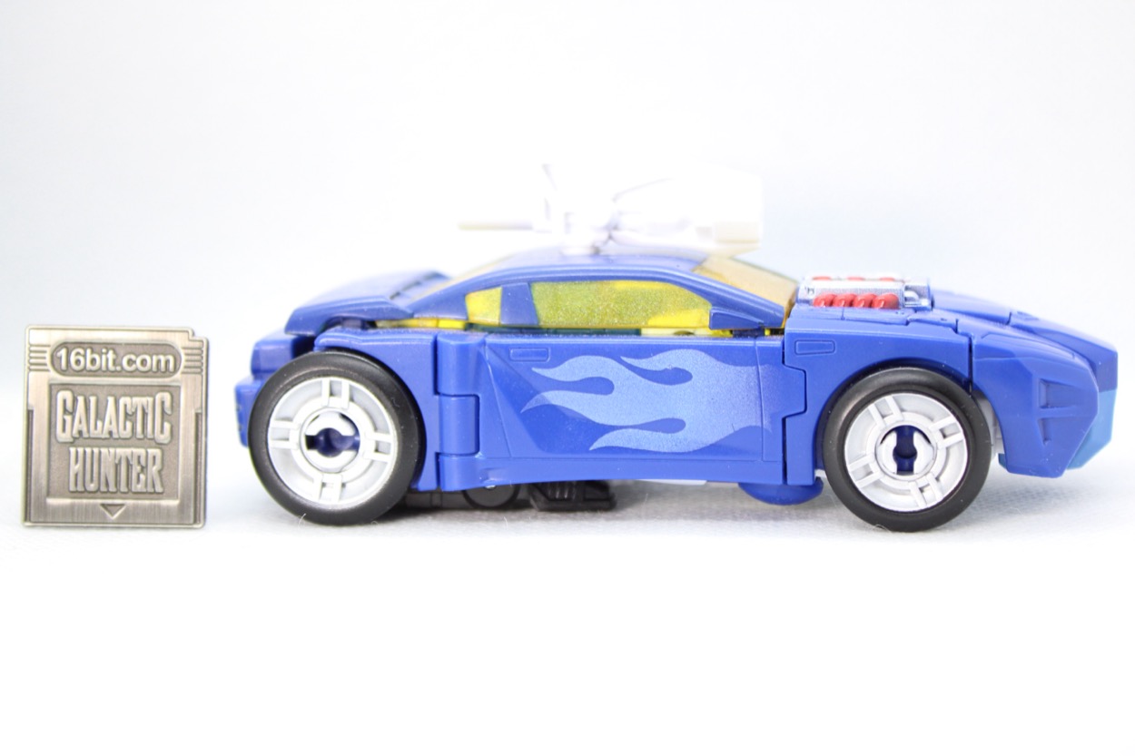 The car mode looks absolutely nothing like a Dodge Viper, as I am sure nobody wanted a call from Legal. The broad strokes of the design are similar, with those glittery yellow windows and some blue flames - but they're very different blue flames. The exposed engine evokes the original without being identical, and the car mode itself shares the blue - but not much else. The design is its own thing, and while I don't dislike it I doubt it will satisfy fans wanting an improved remake of the original toy from over 20 years ago. It's fun, sturdy, and I daresay probably a better overall toy for the adult fan wanting a robot on their shelves. But for those demanding toy and/or anime accuracy, I don't know what to even suggest as a good option for future designers. The original design had some pretty unsightly kibble, and it was a bit of a chore to transform. This one streamlines a lot, but it might not look exactly right. It's a trade-off, but I think if I had to do it over and only pick one toy? This might be the better option available today.