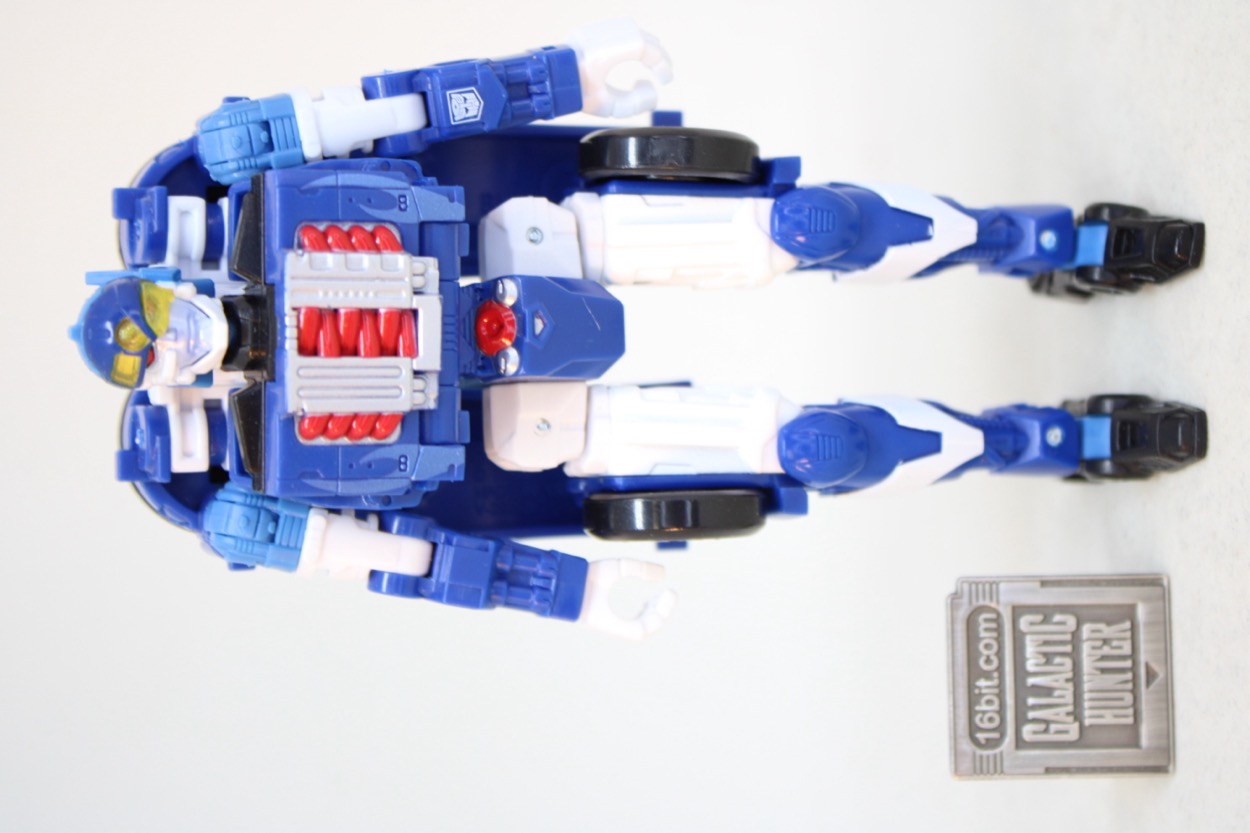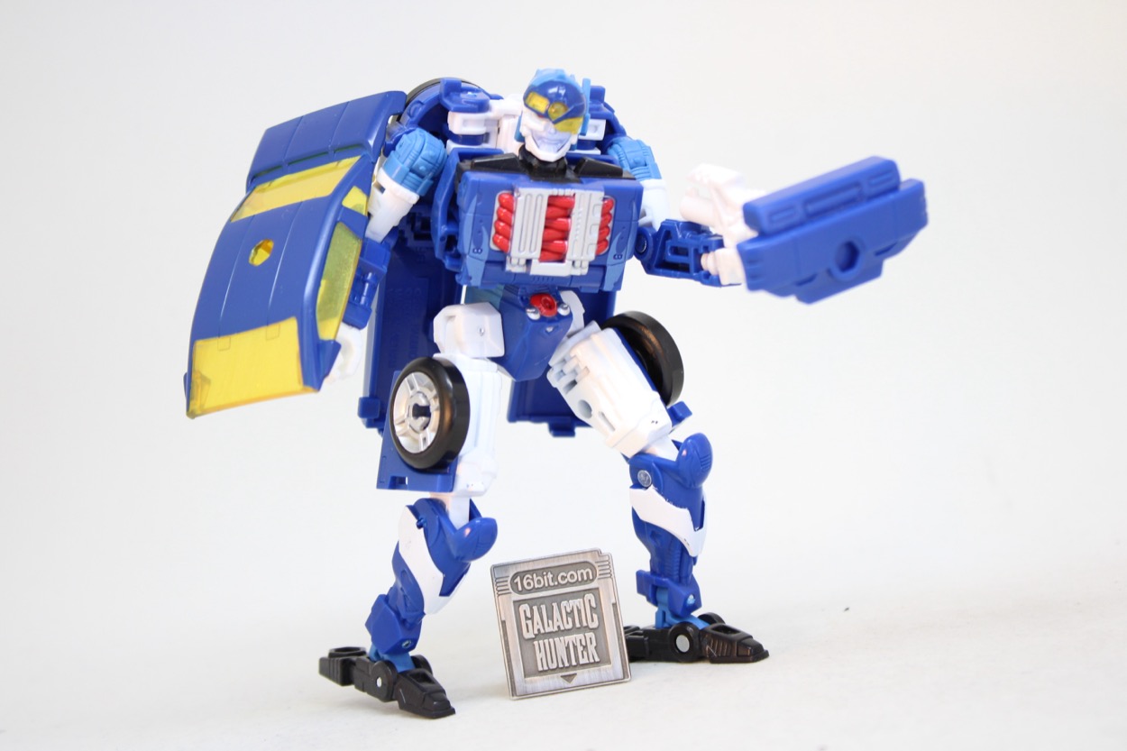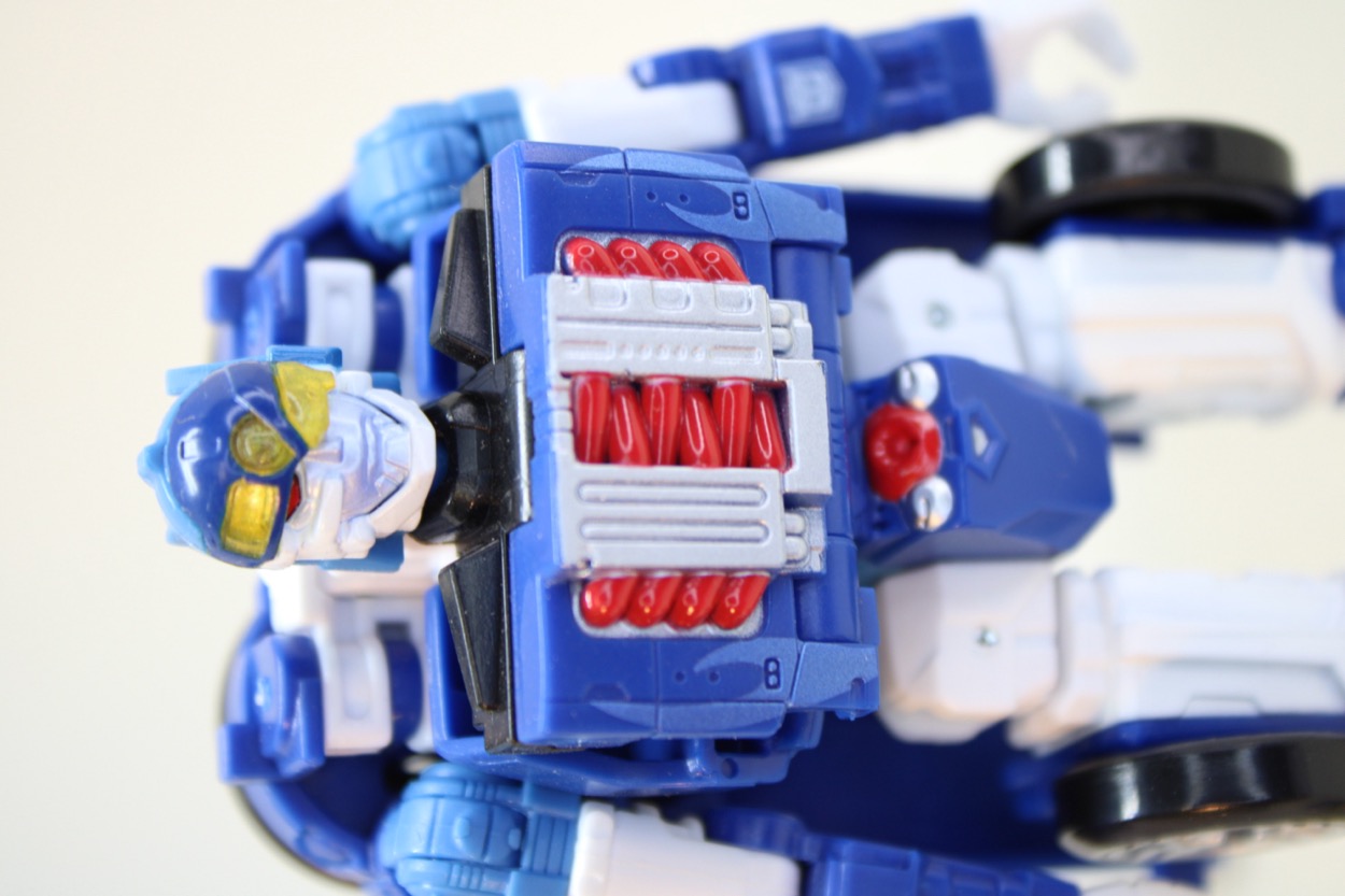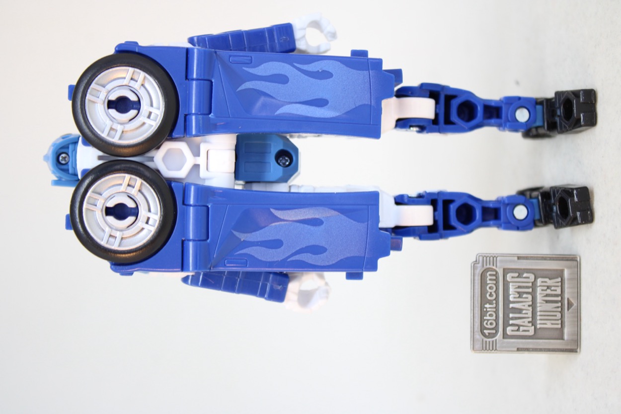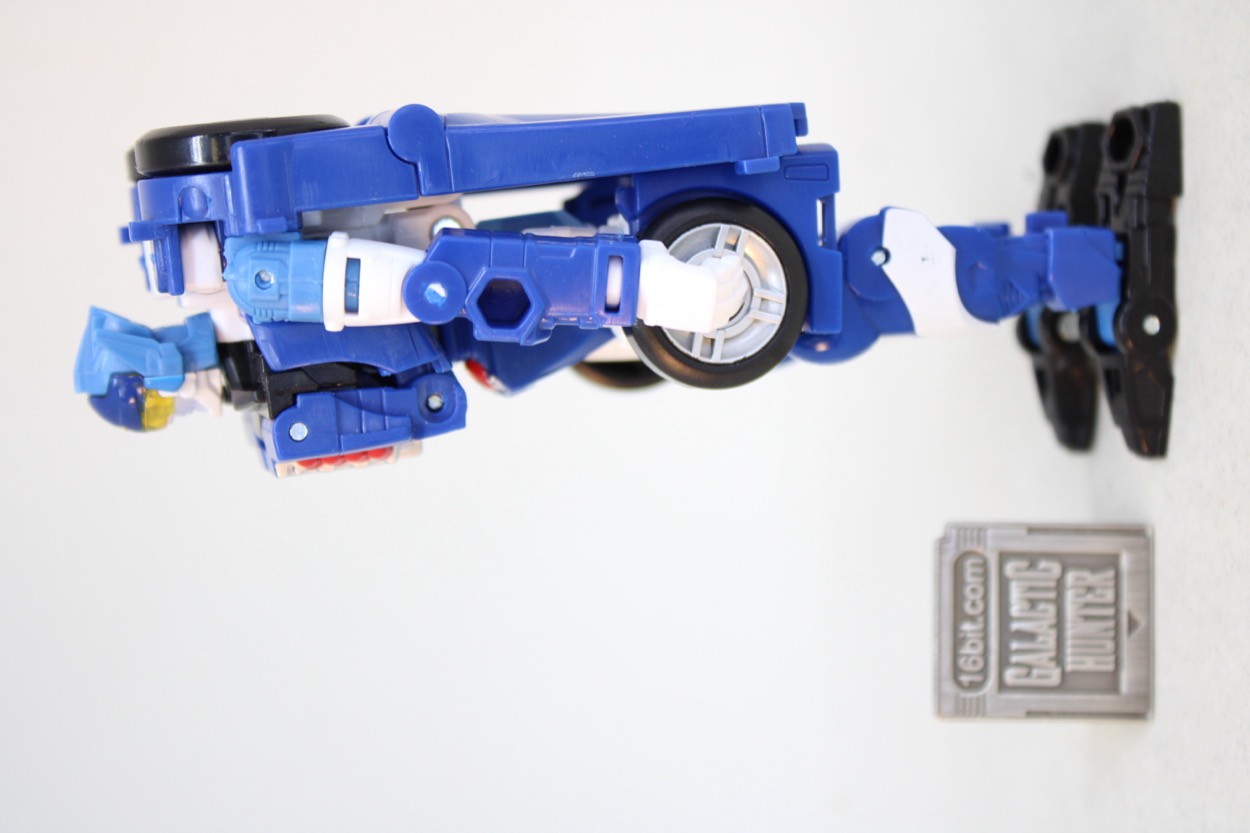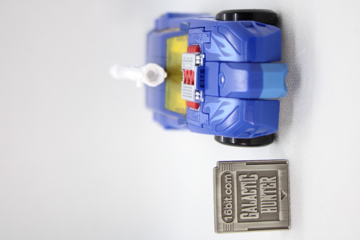 The car mode looks absolutely nothing like a Dodge Viper, as I am sure nobody wanted a call from Legal. The broad strokes of the design are similar, with those glittery yellow windows and some blue flames - but they're very different blue flames. The exposed engine evokes the original without being identical, and the car mode itself shares the blue - but not much else. The design is its own thing, and while I don't dislike it I doubt it will satisfy fans wanting an improved remake of the original toy from over 20 years ago. It's fun, sturdy, and I daresay probably a better overall toy for the adult fan wanting a robot on their shelves. But for those demanding toy and/or anime accuracy, I don't know what to even suggest as a good option for future designers. The original design had some pretty unsightly kibble, and it was a bit of a chore to transform. This one streamlines a lot, but it might not look exactly right. It's a trade-off, but I think if I had to do it over and only pick one toy? This might be the better option available today.