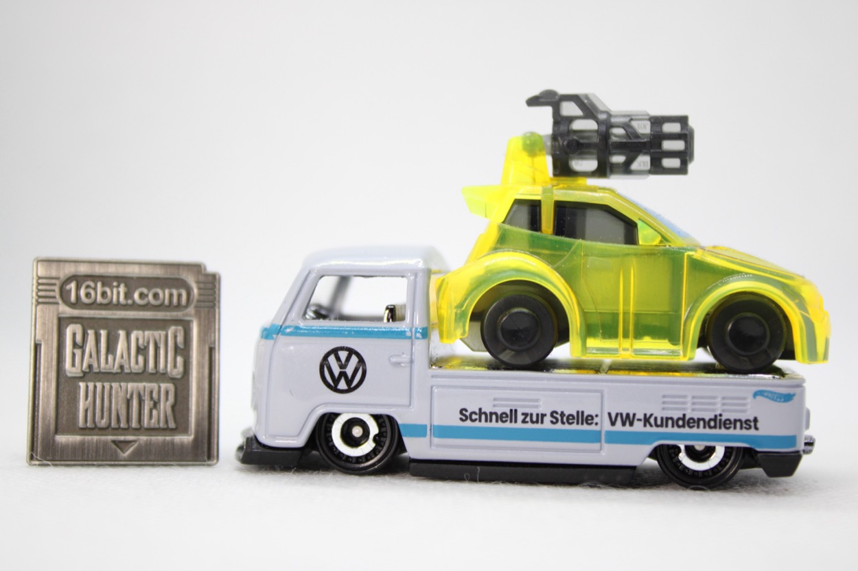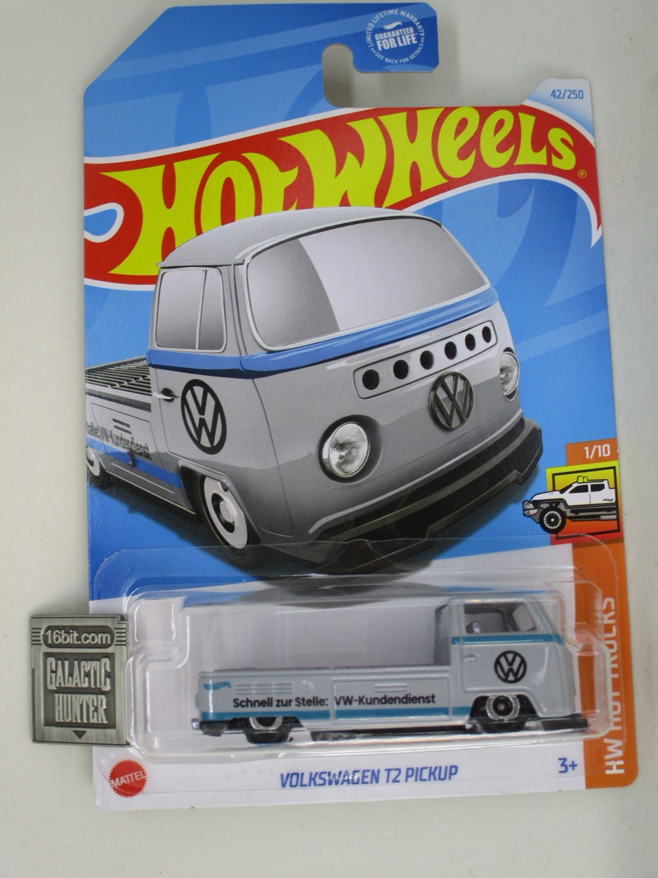 Mattel Hot Wheels Volkswagen T2 Pickup Die-Cast Metal VehicleSometimes you're just in a store and go "hey, that's neat!" The Volkswagen T2 Pickup has a lot of the rounded elements you recognize from more common German cars, but at least where I live, it's exotic. I don't see a lot of VW trucks here at all, let alone any flat bed things. This is probably the least interesting colorway of the toy, too - light gray with blue is a bit of a snore. Bolder designs and brighter colors are available, but this is the one I could find.