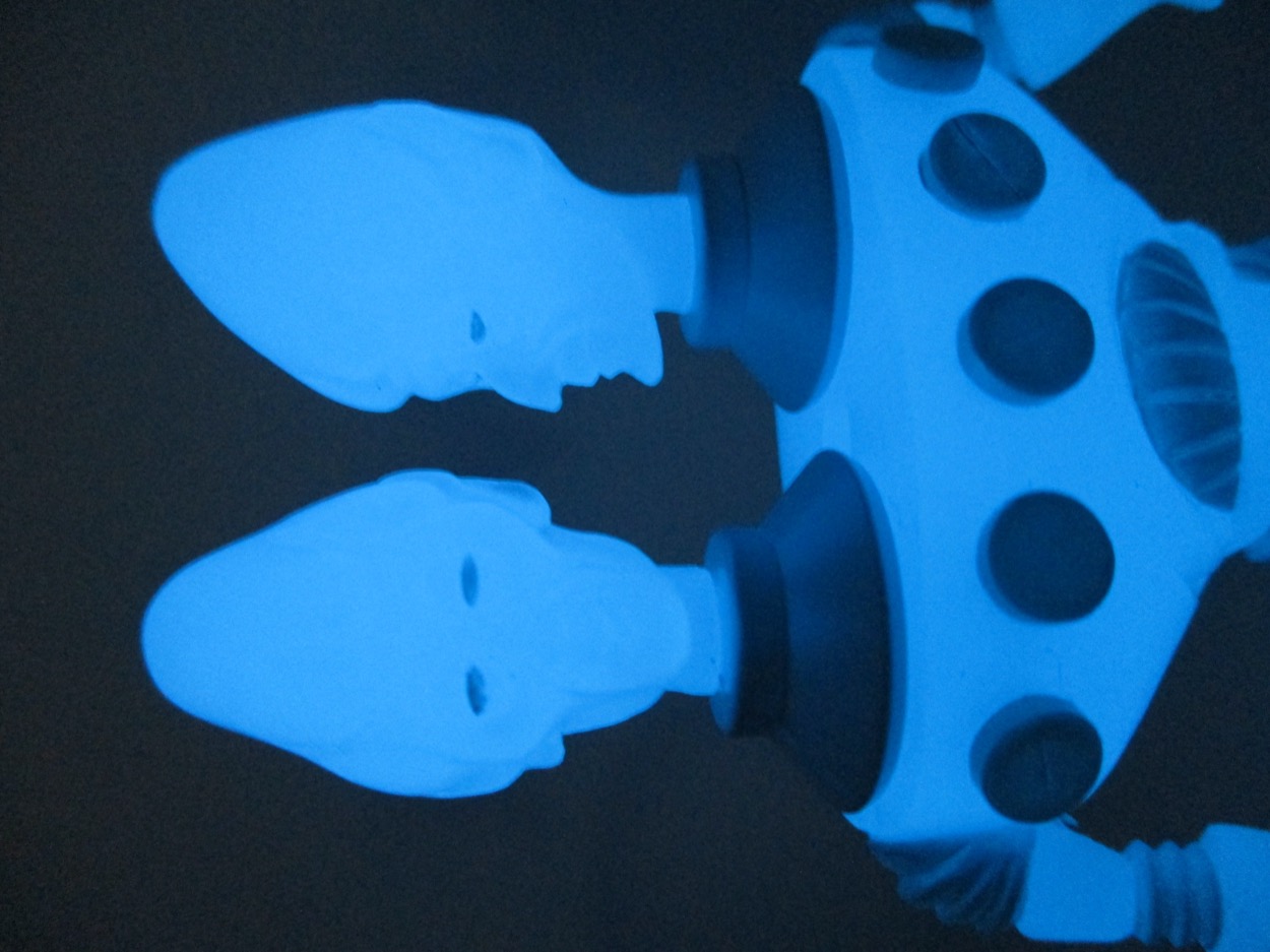 Action Feature: Glows blue in the dark, pops apart