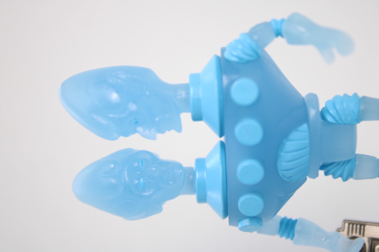 The Outer Space Men, LLC Outer Space Men Bluestar Gemini Action FigureThe Outer Space Men is one of my favorite batches of toy designs ever, and I've still got tons of unreviewed figures. Granted, most of them are glow green, glow blue, or plain white... which is why I've been dragging my feet. I've got some really nice fully painted ones, and can't complain about a single one of them as a stand-alone thing. If they were doing new fully-colored figures, I'd be shouting their praises from the hills. And new characters? You couldn't shut me up if we got The Man from the Sun or The Woman from Ceres. But I've got eight two-headed guys on my shelves now, so it took a bit to get to the very bright Bluestar Gemini.