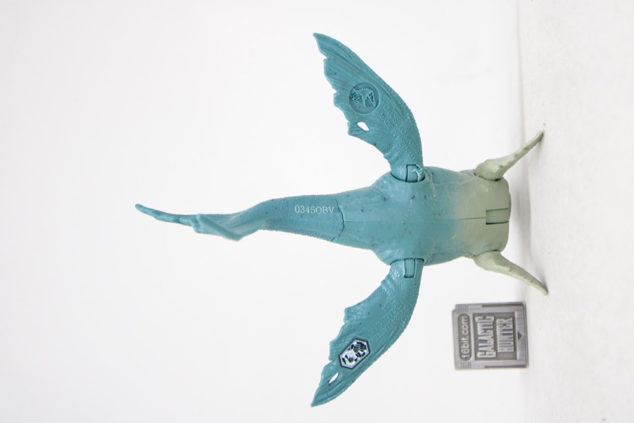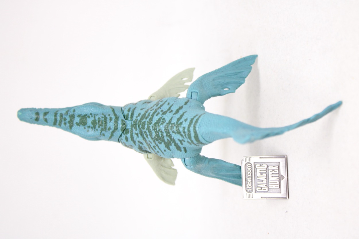 There's not a lot new to the sculpt, other than a high level of detail. Tiny teeth, a smooth tongue, and wonderfully bumpy skin all look like a high-grade model more than a toy. It just looks incredible, but again, I grew up with some simple dinos until Tyco and Kenner upped the ante with Dino-Riders and Jurassic Park later on. This fellow's fins look leathery, with some "dino damage" fraying and a couple of holes to indicate some previous battles.