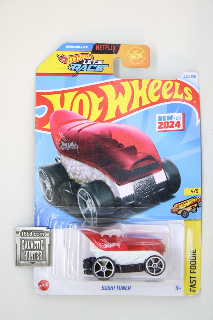 Mattel Hot Wheels Sushi Tuner Die-Cast Metal VehicleI keep seeing and almost buying the Sushi Tuner and finally went for it - the 2024 debut of the casting keeps showing up at, of all places, the grocery store. If you go to a lot of Japanese places, it looks a lot like a piece of tuna on top of rice. Or maggots, if you're a friend of mine. Or the dome from ALIEN. If nothing else it's distinctive, and should go along with the cake slice, hot dog, cheeseburger, taco, donut, jello mold, and other snack treats.