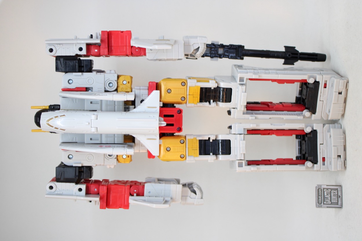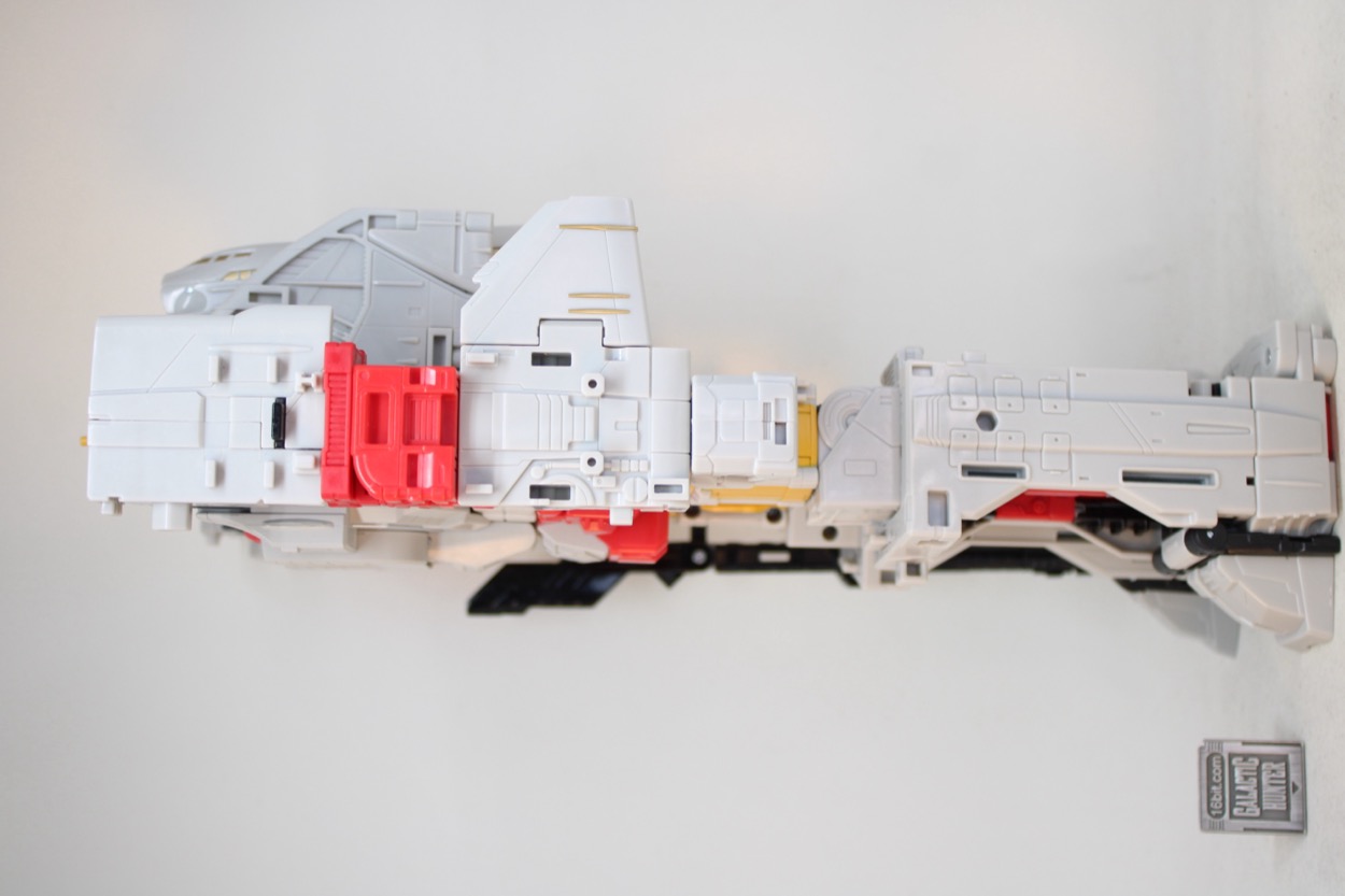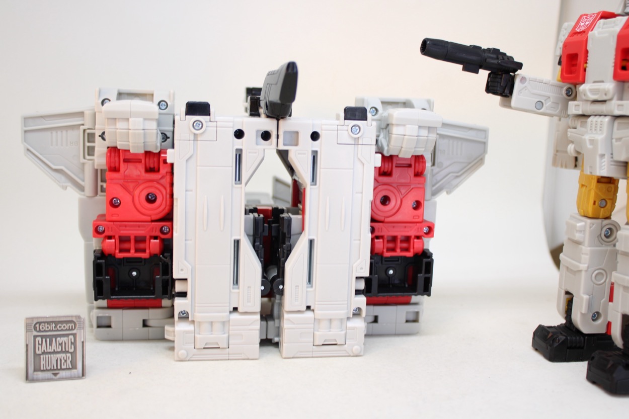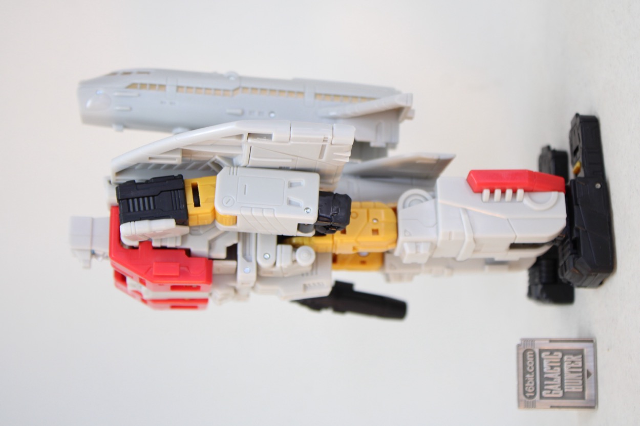 Packaged in vehicle mode, you have the basic jet ready to go. With a few quick changes, you can clamp on a massive posterior that carries all the combiner bits. I love how everything connects with various clips and clamps, and the tabs/slots all align nicely. Deco is good, colors are nice, and it gets the job done. It also isn't much of a toy, in that there aren't a lot of action features or firing rockets or anything. It's a plane with a landing skid, and it can also be a bigger plane. It's not as elegant as what we got from Motormaster - which I guess I never finished reviewing - but Hasbro needed to get that mass somewhere. I assume fans are also less demanding of the alt modes anymore, once they get this home it's going to be the big combined robot and it's going to stand on a shelf that nobody touches until they move again.