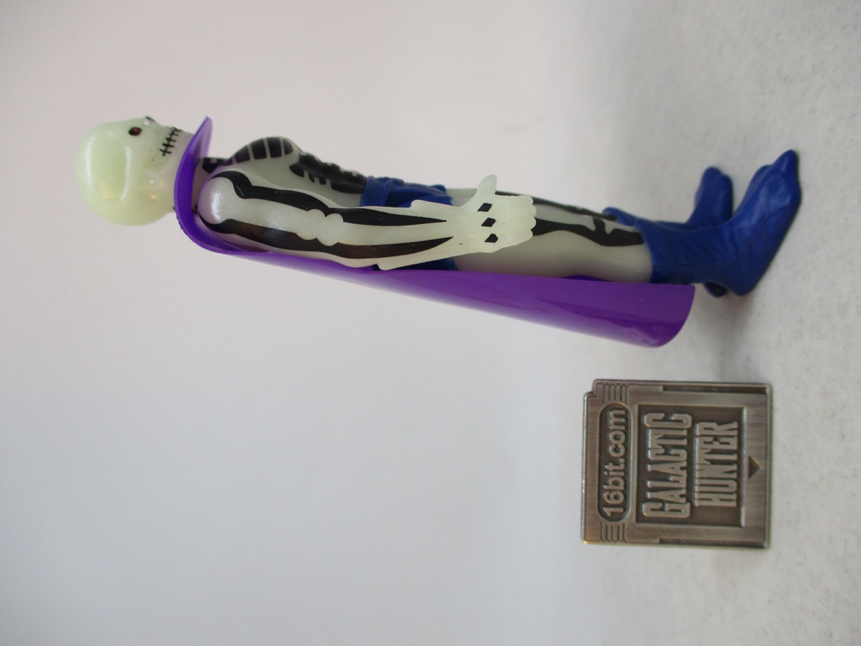 The figure itself has a unique head, with arms and legs that look like Skeletor's and a torso that might be unique. I don't have all of these guys. The cape is a shiny vinyl sheet, riffing on the old Darth Vader/Obi-Wan Kenobi/Lando Calrissian/Jawa accessory with a twist. Rather than have arm holes, they gave it a neck hole - so it hangs off the head. I don't believe it can be removed without damaging anything, and it's a great design choice. You can have Scare Glow sit in vehicles without ruining or creasing the cape. It looks a little weird... but so did the other cut of vinyl capes. Comparing him to other figures, he fits.