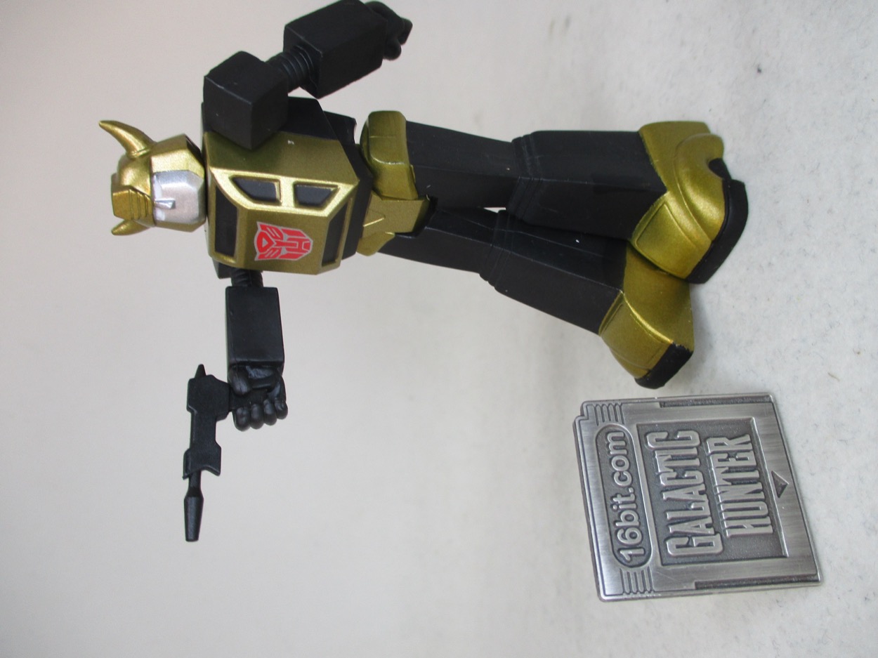 Super7's Gold Armor Bumblebee is a figure I picked up on eBay a couple of years ago after dragging my feet getting it at Target. While not labeled as Generation 2, the gold coloring is hard to ignore. Super7 took their basic yellow figure, and replaced the yellow paint with gold. The face is a metallic silver, with white optics. Admittedly the optics don't "pop," but it still looks pretty great.