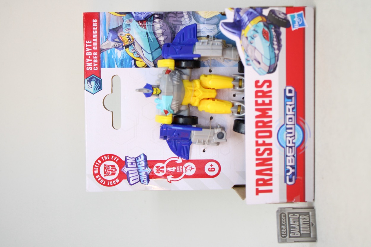Toys have been sort of under attack since the 1990s, as collectors kept putting in demands for fancier sculpts, more articulation, fewer mechanisms, and things that generally make these kinds of toys out of the impulse price point. Hasbro dialed back its new Transformers Cyberworld line mostly around simple, not-quite-1-step figures like Sky-Byte. The character was a late entry in Beast Wars, who got repainted in a later series and took over the original mold's personality completely. Now we get a new Sky-Byte every year or two.