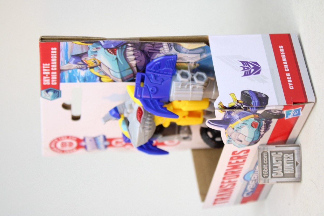 This one came out as part of the first wave of Cyberworld. Fans seem to like him. The big change in this line is that many figures are mutations of previous concepts. Megatron is a bull, and Sky-Byte is a shark with wheels. I guess they could have called him Drive-Byte, but legacy names sell.