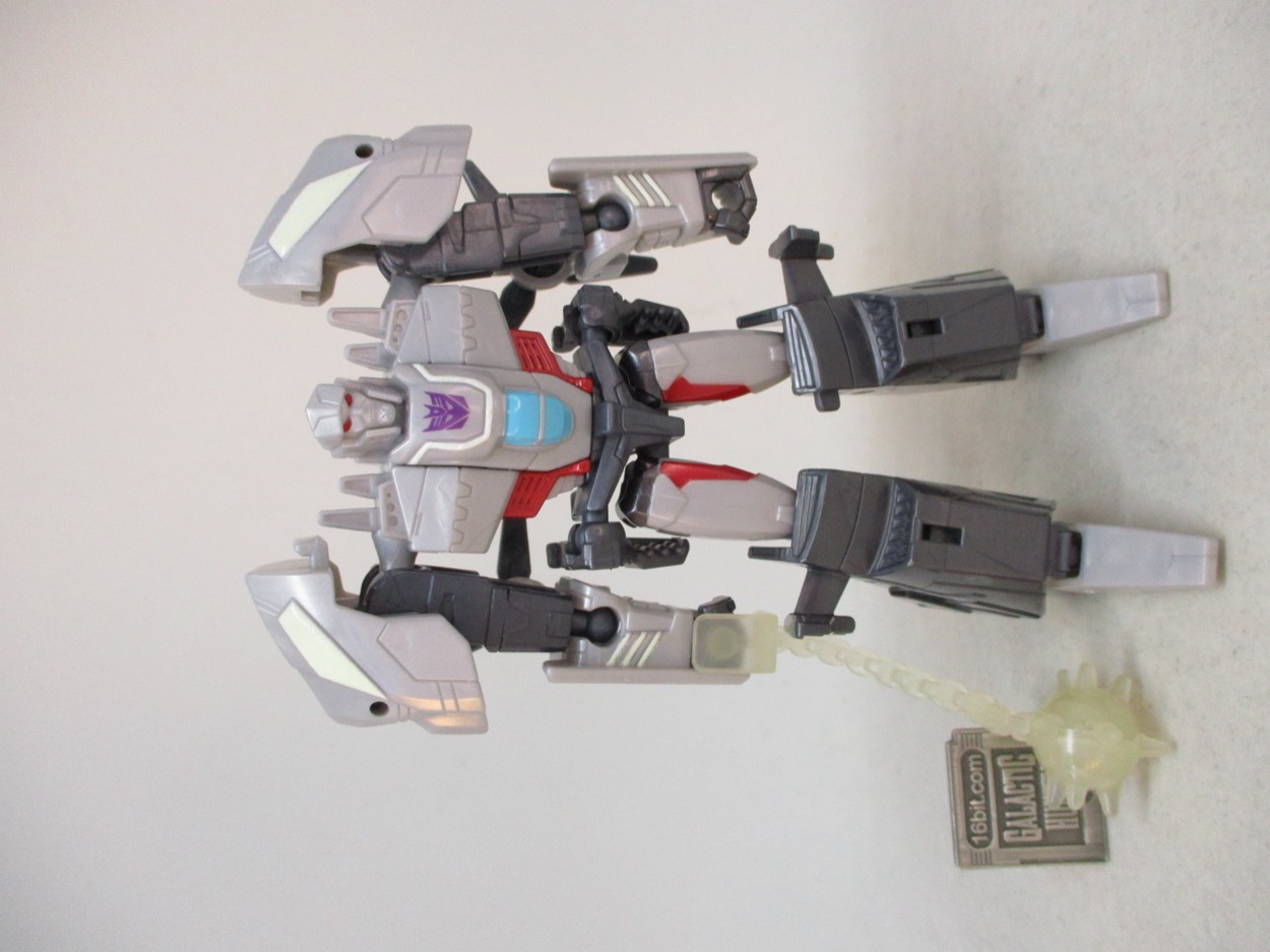 Target's seemingly exclusive Transformers EarthSpark Cyberglow Megatron is a redeco of a Warrior-class toy. A normal Warrior-class toy is around $15, this one was $20, and of course I bought it immediately. They put it in a more traditional box, so it looks like a Deluxe toy, but is not one, and I doubt people are going to notice.