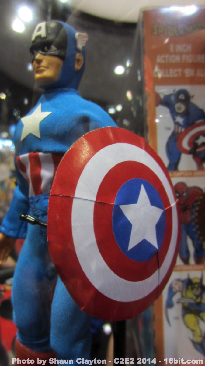 Due to how toy licensing works in 2014, Diamond will also release "World's Greatest Super-Heroes" collections - really a way of getting around Hasbro's figure license - to produce high-end Mego figures. Each set is about $80 and includes one body with multiple heads, costumes, and sets of hands. Spider-Man will be out first, followed by Captain America.