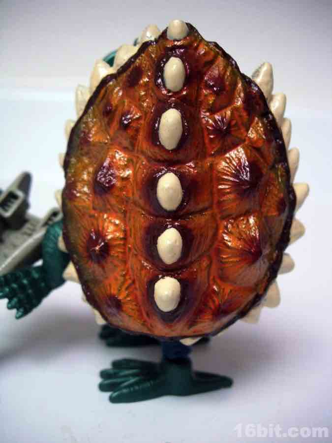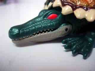 The beast mode is not exactly a solid creation, but it looks cool. The thin limbs and the shell are a little hard to keep together, as the shell pegs don't quite fit into the hand holes. The tail stays in place, and the articulated legs (while unnecessary) are a real nice touch. There's a cool little mechanism in the head where if you move the arm under the shell, the head will bite. It's not a perfect fit but it's pretty nice that they worked something like this in such a small figure. The critter is essentially a barely-poseable creation, but you'll probably going to want to keep it as a robot anyway.
