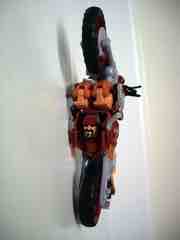 As a bike, it's pretty great. His head is hidden under the vehicle, there's a kickstand that pops down, and the wheels roll. There aren't a heck of a lot of thrilling details on here, but you'll note that the weapon becomes the exhaust pipe, and there's a fun little sculpted license plate holder in the back. Unlike most other Universe 2.0 or Classics releases, this figure does not have a wacky vanity plate. Perhaps Hasbro will do one on an upcoming repaint, which, to date, is not on schedule. (My prediction: Botcon 2012 or 2013.) The Japanese market already got a repaint of this mold called Scrapheap, and it has a new (and currently exclusive) head sculpt.