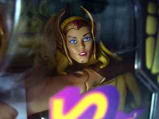 Standing about the same height as other figures in the line, and may remind you of Teela in a few spots. She-Ra has tons of new parts, specifically her costume, and that doofy mask element. There is a lot of articulation here, and while she can stand on her own the ankles on my sample are a little loose. A display stand may be a good purchase, or a doll stand with a clip to hold her by the waist. Not only can you swap heads, but the cape is removable if you don't like it. Aren't you happy to have so many options?
