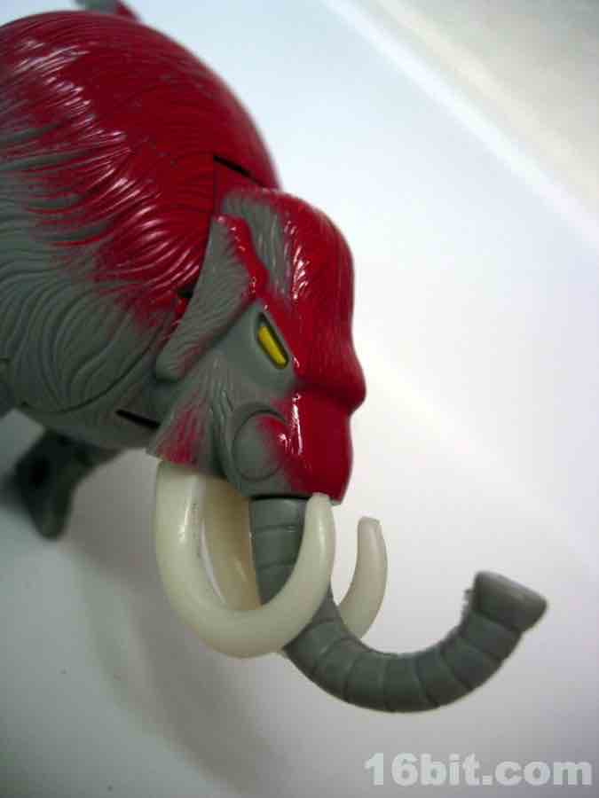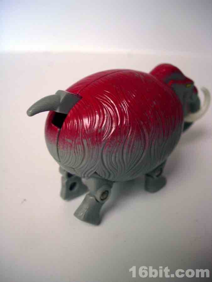 All Meteorbs are basically cut from the same cloth-- you get a nifty little toy creature of some sort that folds into an egg. In this case, the egg has extensive sculpted fur, molded grey plastic, and is topped with bright red paint. I can't figure out why, perhaps at some point scientific thought on prehistoric mammals said "absolutely, the elephants of old were gingers." That or maybe it just looked good at retail-- dark purple didn't make a lot of sense for a sauropod either but I guess one color is just as good as any as these things go.