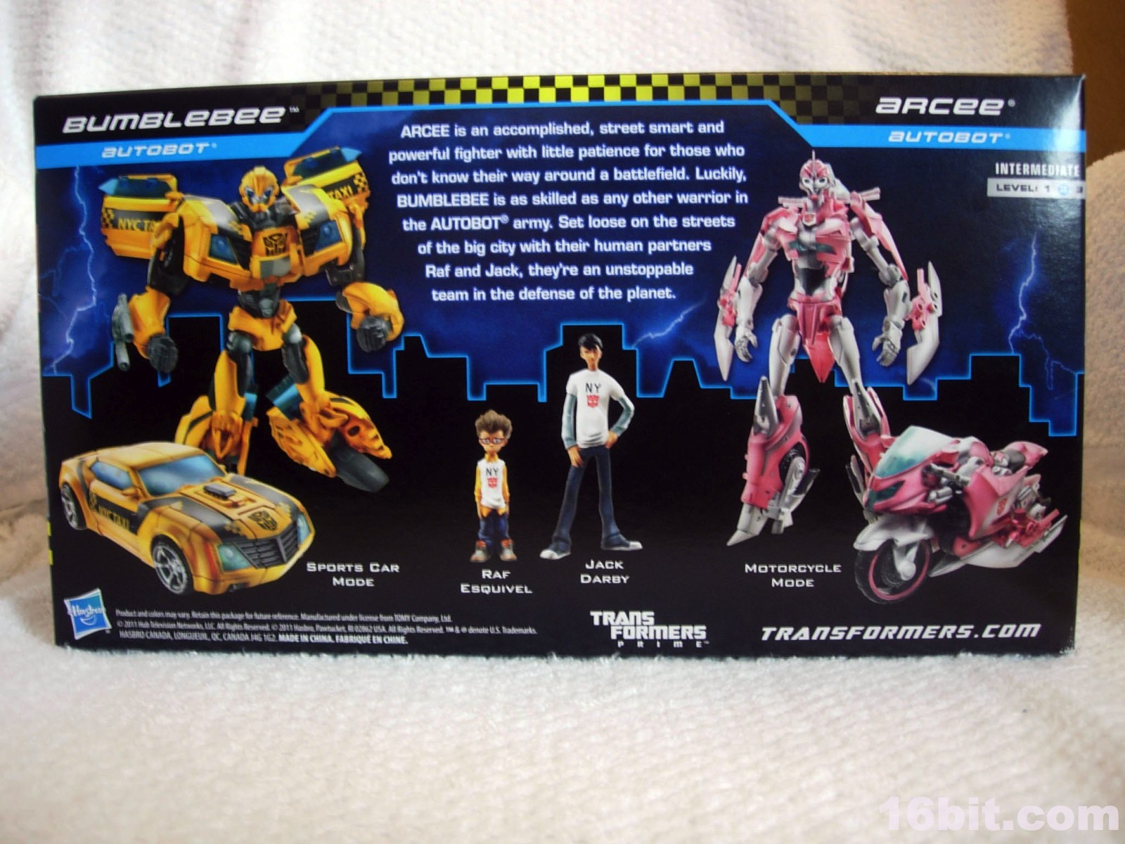 Item No.: No. 37972 Manufacturer:Hasbro Includes:Two blades, two human sidekicks, Bumblebee figure Action Feature:Transforms into motorcycle Retail:$30-$33 Availability: October 2011 Other: Prime Arcee Prepaint