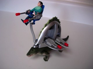 If you're really crazy about dimetrodons, Playmobil will be making a new one in Germany for 2012, and Hasbro and Takara have released two versions of theirs from Beast Wars Neo and an exclusive set of Transformers sold at Wal-Mart. You can get a few Jurassic Park versions (all of which are green), and for those willing to do a little legwork, there are multiple releases in Zoids and Robo-Strux in various sizes. The really big one has a fin that moves while the robot creature walks! I like 'em all, but I always had a ton of fun with this Dino-Riders release. There aren't many around these days, but when they do show up they don't tend to be too expensive. I think if you got a complete one for $30, you wouldn't be sorry.
