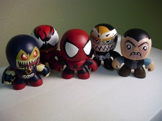 It's not common that Hasbro painted actual emotion on the Mighty Muggs in some sort of comic emote, but Spidey here actually has a visual representation of his spider sense, tingling. I dig it. This tiny vinyl figure lacks the "webbing" of his costume, presenting the figure in a much simpler, even more stylized version of his famous costume. Molded in red with white and black, this may be one of the simplest takes on Peter Parker's alter-ego, but I have to say the six "spider sense" marks really makes it one of the most fun.