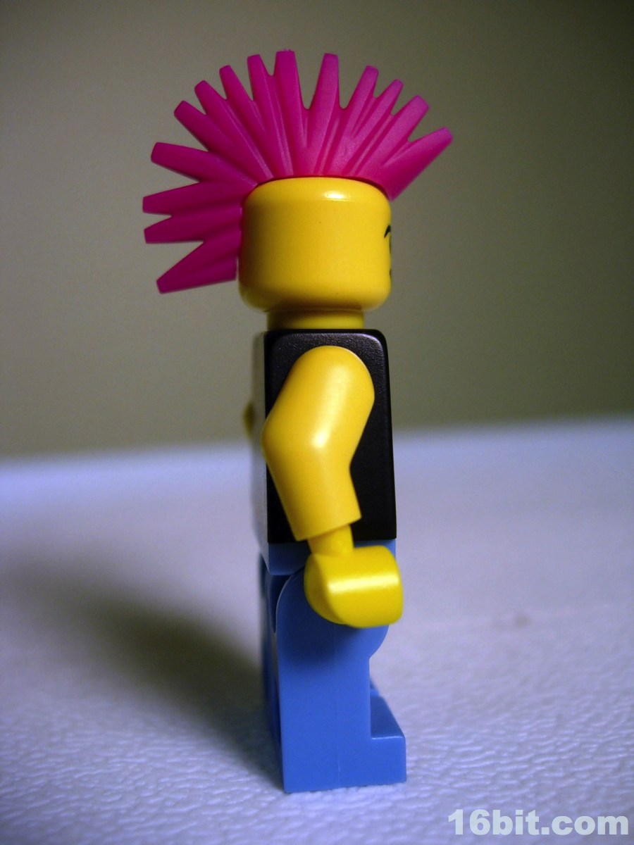 The Punk Rocker as a LEGO figure says a lot about our culture. At one point, the kids with the crazy hair held up by glue and safety pins in their noses and loud music were scary outliers and are now cuddly mascots or worse-- it's "retro." The punks have been afforded a degree of respect that the hippies haven't been given culturally, but both have probably evolved to a point that would make their respective founders vomit. Where was I? Right, LEGO figures.