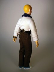 The head sculpt is good, and the outfit is appropriately Mego-ish. Well, mostly-- I like the belt, and the watch communicator is a great feature. The head sculpt looks like a cartoon character, as it should, and his goofy smile is just perfect. His kerchief though? I don't care for it. If you look at the picture you can see it looks a little worn, and that's exactly how it looks as it comes out of the package. If you're a customizer, you might consider trying your hand at seeing what you can do with it. I'm a putz, so I'm just going to leave it.