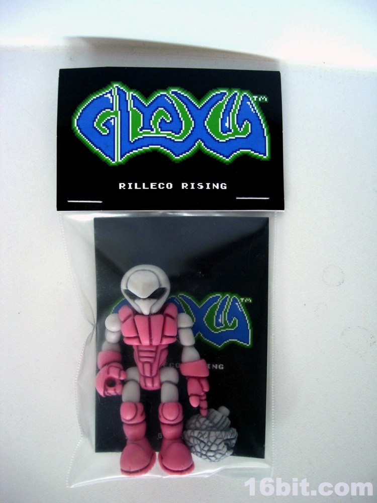 Like the other figures in the line, the main play feature is customization. Each figure is articulated in several spots, and is made of about a dozen parts which all pop apart and can be swapped with other figures. If you've ever played with Stikfas or Xevoz, and for some reason still haven't tried Glyos, they're fundamentally quite similar. The key difference is that Stikfas and Xevoz have ball joints, while Glyos have the flat joints you came to love in the 1970s through the 1990s on most of the Kenner toys.