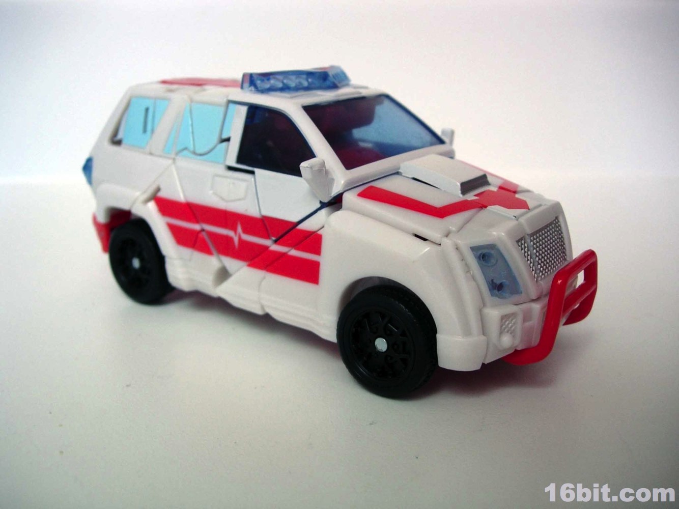 Since this is the only modern US-released transforming toy based on the proper G1 Ratchet, it commands a premium on eBay, which I find odd because Phoenix grocery stores were still drowning in Ratchets well into Spring 2011. Hasbro has done better, but G1 Ratchet's best official representation is probably somewhere out in the future. If the price is right, go ahead and get it, but just remember I warned you that it's disappointing. The gun/laser scalpel weapon is certainly a clever one, but it's not clever enough to make up for the chore that is trying to play with this toy. Hasbro can do better. I hope they'll try.