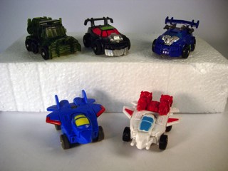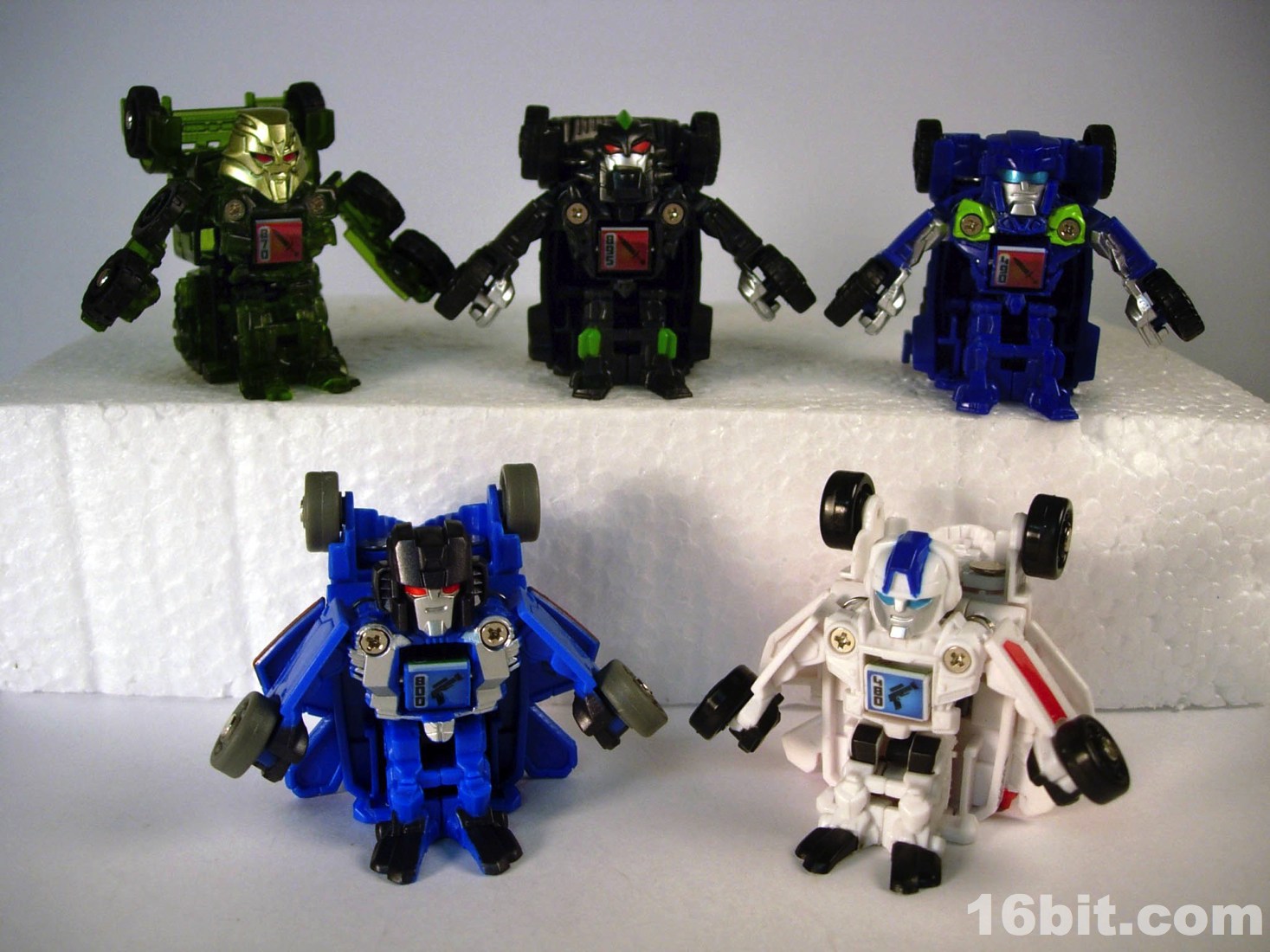 Transforming it is a little touchy, the springs on some of the more recent releases just don't seem set quite right-- or maybe I got lucky. It's still the same basic push the bumper, watch it flip up deal as before except it seems a little sleepy with jumping up. I might just need to better adjust it, so far I haven't been able to get an ideal setting on it. I still dig the design and since these are mostly going to be living on a collectible mini-figure shelf, I don't necessarily need it to be perfect. For the price, I'm not complaining.