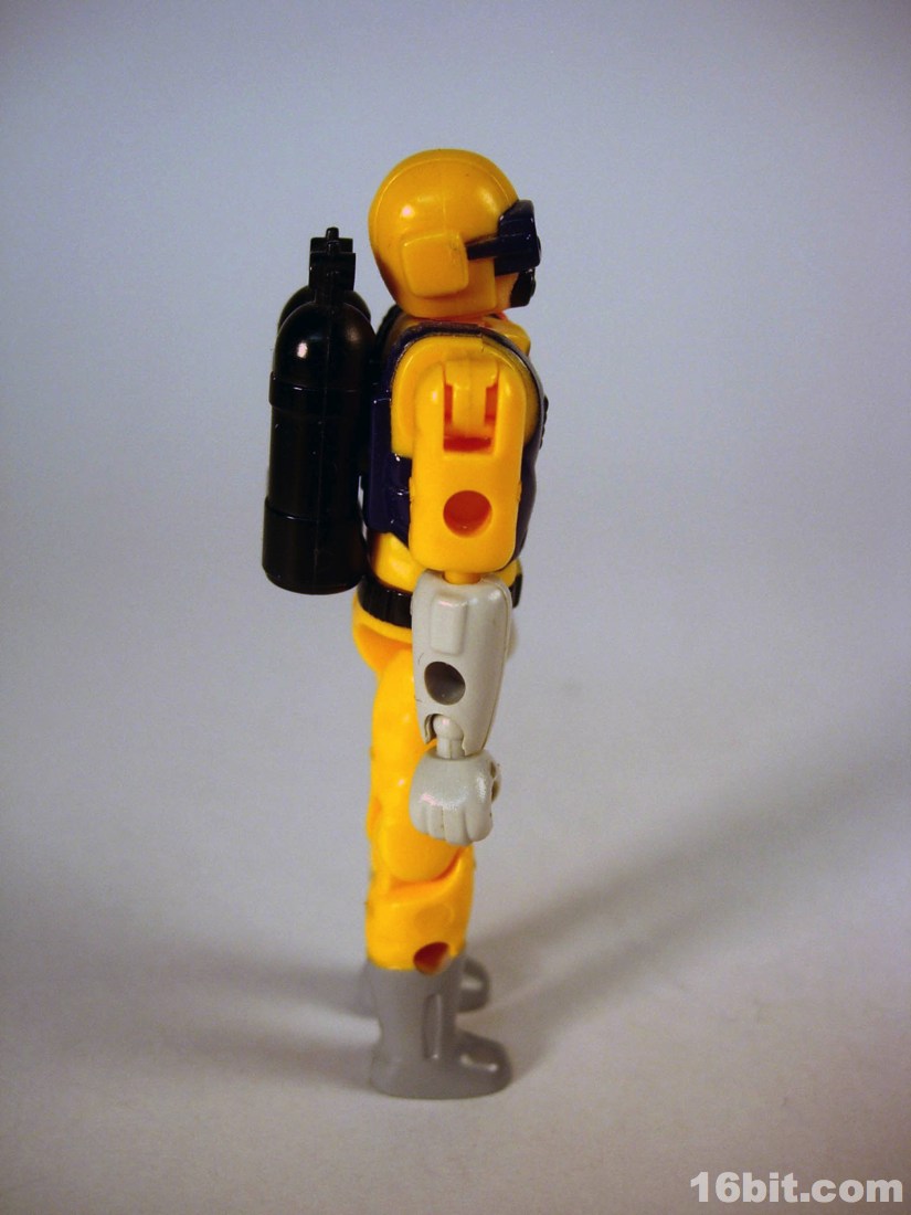 None of these sets got proper US distribution, but some hobby shops had a few and Neptune in particular got a reissue in the late 2000s. The nameless driver has articulated ball-jointed wrists-- real ball-and-socket joints-- plus has numerous places to plug in accessories, were there accessories included beyond a SCUBA tank which plugs into his back. He wears a breathing mask, has a bright yellowish orange suit with grey gloves and boots. It may not look like much in 2012, but let me tell you this thing was amazing when you compared him to the likes of Matt Trakker or Turret. In 1988, a tiny figure having jointed knees and one color of paint on its head was really something. This thing had friggin' ball joints and really feels ahead of its time. It's a crying shame nobody brought these over here because the figure alone is pretty amazing.