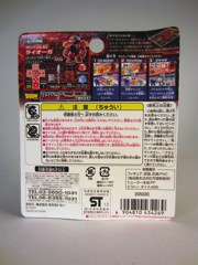 Don't get this single-carded Raioga. That's the one in the middle in the above photo. Consider getting a lion, but remember there are four Raioga figures and the single carded one offers nothing unique compared to the others. There's one in 3-pack BS-01 (with a hamster and deer, on the left) which has a unique sword and shield which are way, way cooler. The carded one (this one, BS-04) just has the bat's weapons. The blind-boxed clear Raioga (BS-03) also has the bat weapons, but it's a) clear and b) on fire. Since they all seem to have the same basic dice, this one is the one that's the most redundant. But being stupid and loose with my toy money, well, here we are. A capsule toy version of Raioga is on the way but color photos have yet to surface.