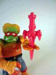 Looking like a cross between Urkel and any given giant brain monster, the coloring doesn't make a lick of sense. Most Mutant toys are blue with a little red, this one has green-- which makes sense-- but why so much orange? The Mutant in the movie is slathered in orange belts and pieces, so why not Raph as the red Turtle? While none of the figures are completely true to the movie, or the Turtles, that's to be expected. This one turns up the weirdness a notch by not going out of the way to really claim elements of either in a lot of places, resulting in what looks like Raphael in a bad home-made Mutant costume rather than the slightly more polished and potentially authentic look to the bulk of the other 7 figures in this short-liveed line.