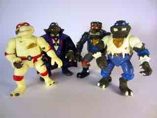 While overproduced, the first year of Universal Monsters Teenage Mutant Ninja Turtles had figures as beautiful as the packaging wasn't. Mike as Frankenstein was the only figure from the debut series who matched the packaging artwork closely, while the others were sculpted or colored quite differently. At about 4 1/2-inches tall, he's roughly the standard size of a Turtle from this era and made from hard, glossy, colorful plastic. These guys are really quite beautiful.