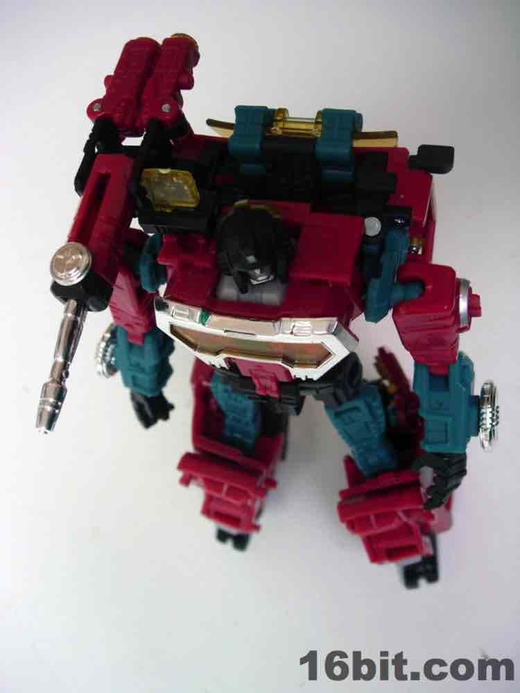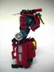 The truck is nice, but nothing special. It's a red craft with some neat lights on the top, with some windows clear orange and others painted silver. It's inconsistent, but it's OK. At 5-inches long it was a decent size when it came out, but today it's almost a giant as Deluxes have been downsized so much. The wheels roll if you transform it right, but it's such a pain in the neck to get everything just right.