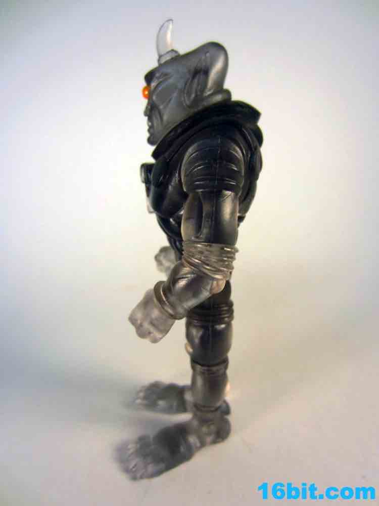 This figure has more "action figure functionality" than the rest, incorporating some clever design.shtmlects surrounding his twin ray guns. The yellow blasters may be stored in holsters in the armor's belt, or in the closed fists. And if you don't like the closed fists, you get opened, clawed hands. They fit pretty well in either place, although I should note that it seems the smoke Cyclops can hold his guns in the holster more easily than the blue version. The blue version, at least on my sample, is a smidgen looser.