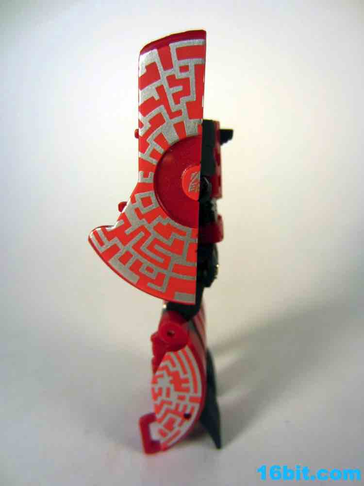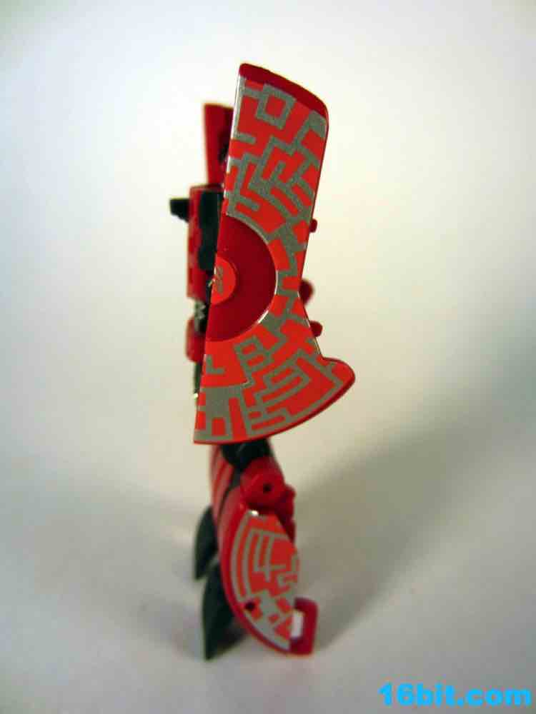Transforming him is pretty easy. Drop the disc on the ground, and you're 90% of the way there. Now just flip out the feet and rotate down the arms. Congratulations: you've now done everything you can do with this toy. Sure, you can give him guns from other toys, but with no accessories of his own his Bakugan-like play pattern may wear thin quickly before he takes up residence inside Soundwave or your shelf.