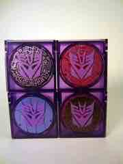 If you're collecting this line, or even just playing around with them, Ratbat, Laserbeak, and Frenzy are currently the best and least frustrating discs. Unfortunately there's very little you can make them do aside from transforming them, but that was true of many of the G1 tapes as well. If you could slap a couple of silver guns on their backs, you'd be all set. That's the only piece which I feel is missing from the new data discs in this set. To avoid accidental transformation, disc cases are included which look vaguely like old-school Energon Cubes. The purple boxes have a hinged lid and a hole in the bottom, so it hugs the toy nicely while preventing accidental auto-transforms in your pocket. Kudos to Hasbro for this as I'm sure it will help prevent breakage and loss during these toys' lifespans.
