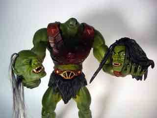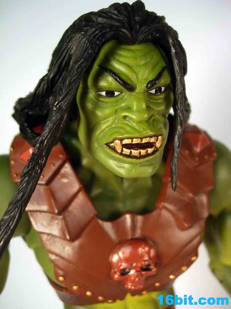As of late last year, this one was selling for about $30 before shipping. That's actually about perfect for this toy, if not a little cheap. His deco is pretty great, with light to dark green skin and nifty faux-bronze armor with a skull on it. Quality stuff. Since I have no real emotional connection to the figure (it showed up in the mail) it's just a neat, big guy who hangs around with my other bad guys in the basement. I bet I'd like it more if it had an arm-smashing action or something, but it is a nifty, fantastical creature to keep around the toy box.