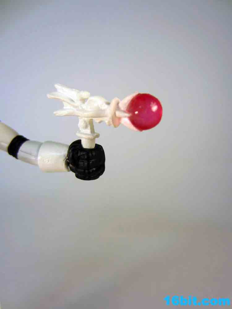 Two years later, he and the Four Horsemen have redecorated the figure with a similar, but different, take on letting more light in. For this release, the entire figure plus his accessories were cast in clear, colorless plastic and painted. The good news, it lets the original intent of clear pink weapons exist. Now they're painted pink, and they look better than ever. The good (?) news is that the figure is painted in a much whiter color than the light grey of the 2010 release, but as it's cast in clear colorless plastic some light can go through. Paint adds to the opacity, so it's a compromise between the aforementioned desires of a clear weapon and clearer helmet. I assume. I don't want to speak for the guy.