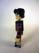 He falls short with his accessory interaction. For example, the feet are painted and the paint makes the foot holes too tight to fit on the LEGO-sized stud on the skateboard or the display stand without a bit of force. Even then, it doesn't really feel like a good fit. The skateboard itself can be held in his hand (awesome) and has rolling wheels (impressive) but the wheels fall out if you so much as touch them (erg). The backpack can fit over one shoulder, plus there's a peg to fit into the jacket that's a tight fit, but if you can get it in there it's pretty stable. There's a lot going on here, and the designers did a great job, but the execution at the factory falls a little short as toy-ness goes.